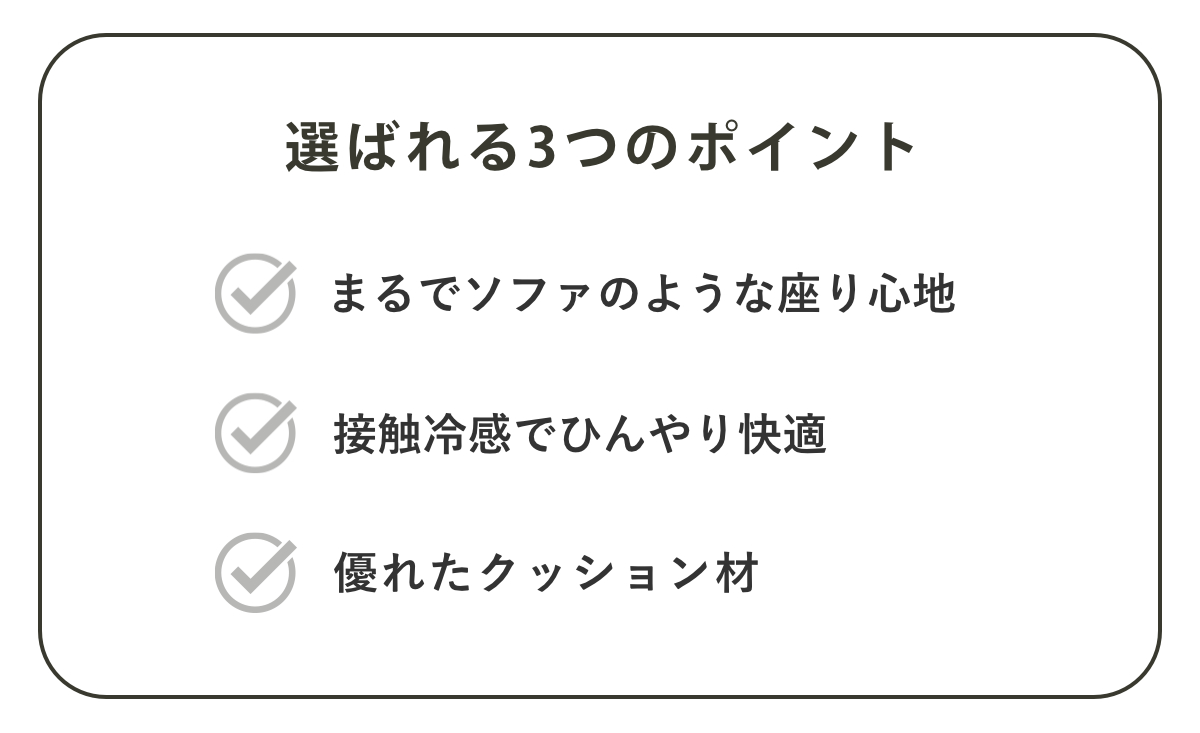 特殊冷感のポリエチレン糸を使用しています。蒸れにくく、夏場でもさらっとした座り心地です。