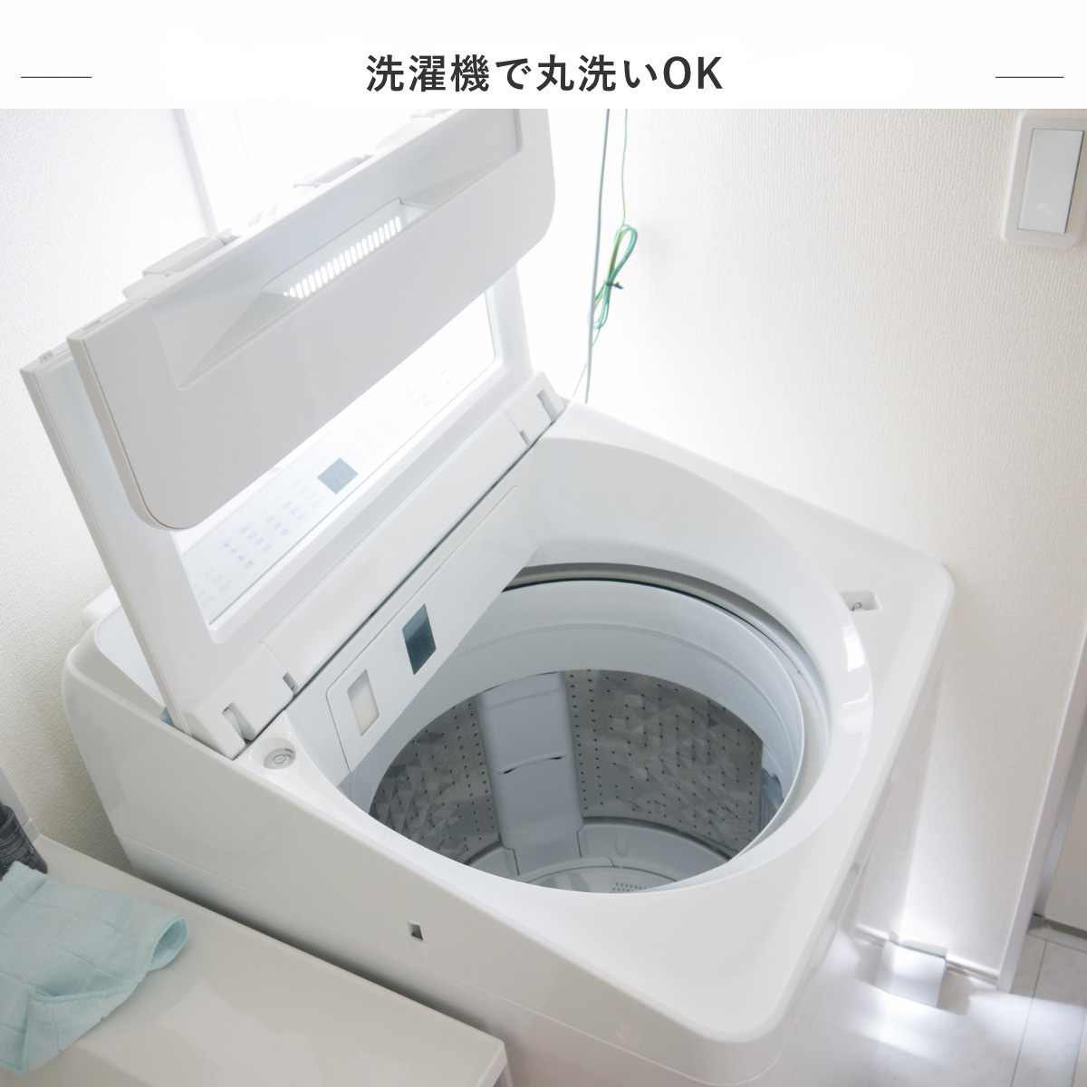 洗濯ネットに入れて洗濯機で洗えます。衛生的にお使いいただけます。繰り返し洗っても型崩れしにくいのもうれしいポイント。