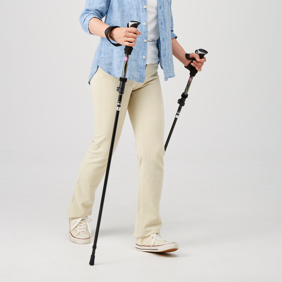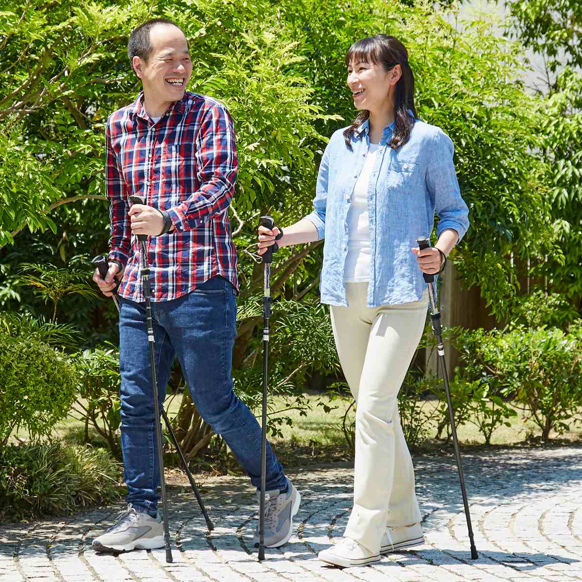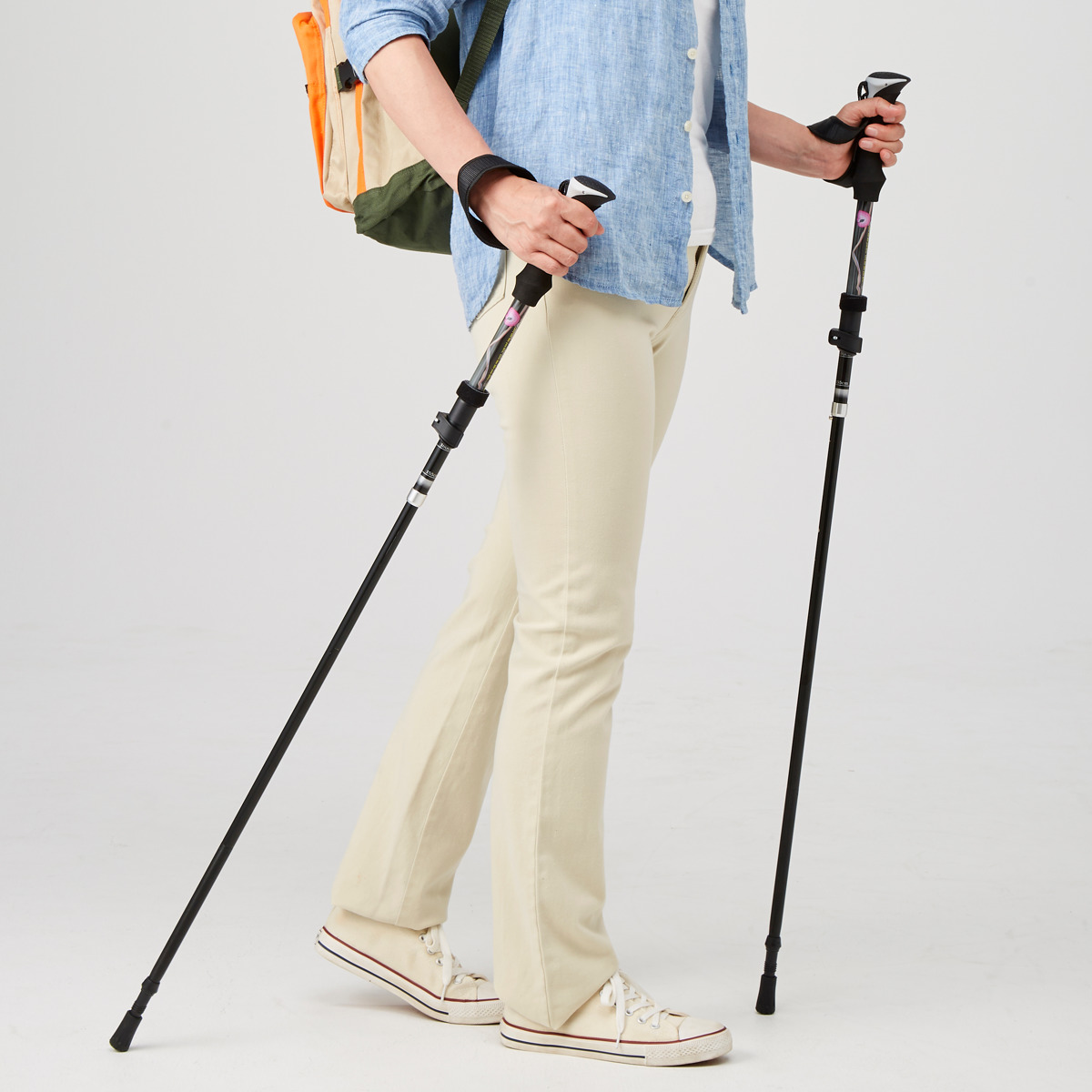 長さ調節ができる伸縮式ウォーキングポールです。身長や歩行スタイルに合わせて調節でき、自分に合った高さで快適にお使いいただけます。