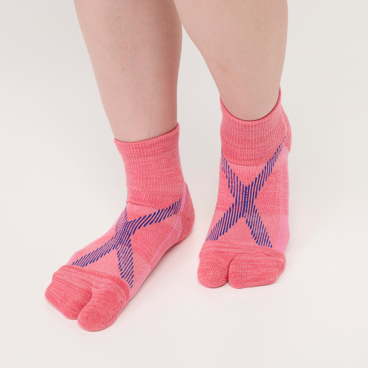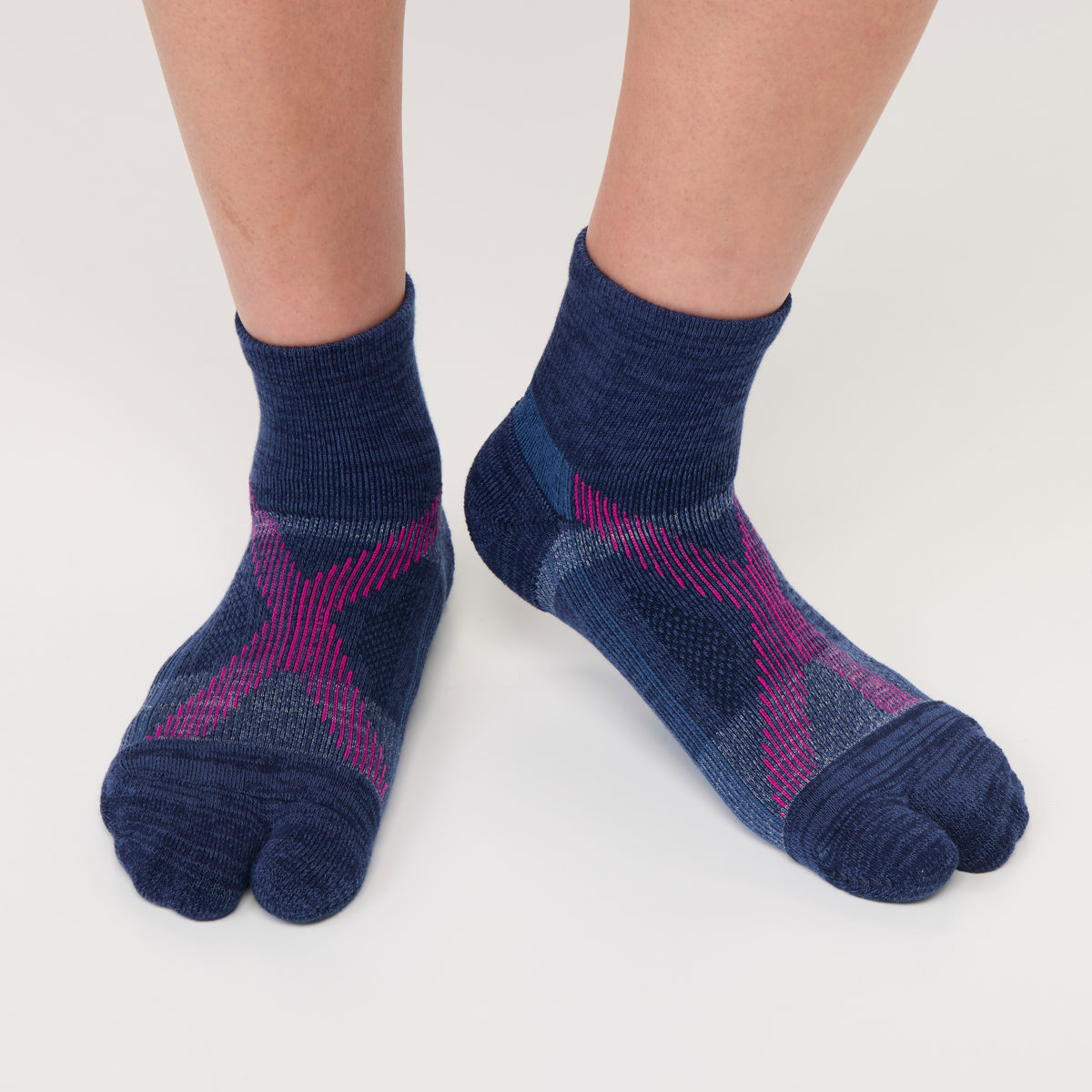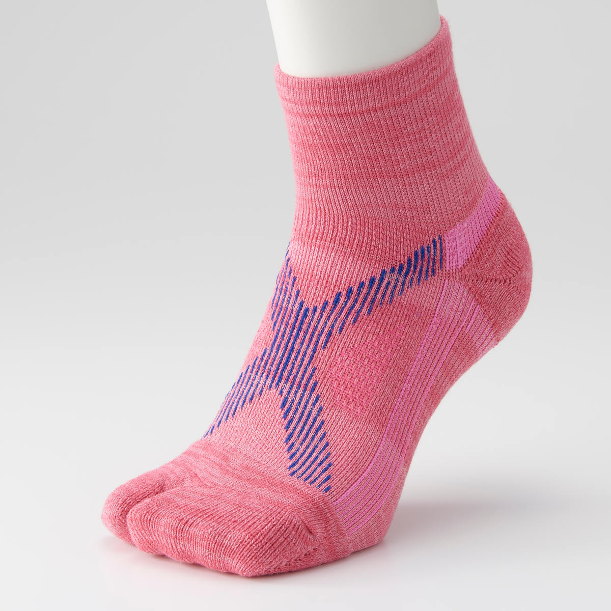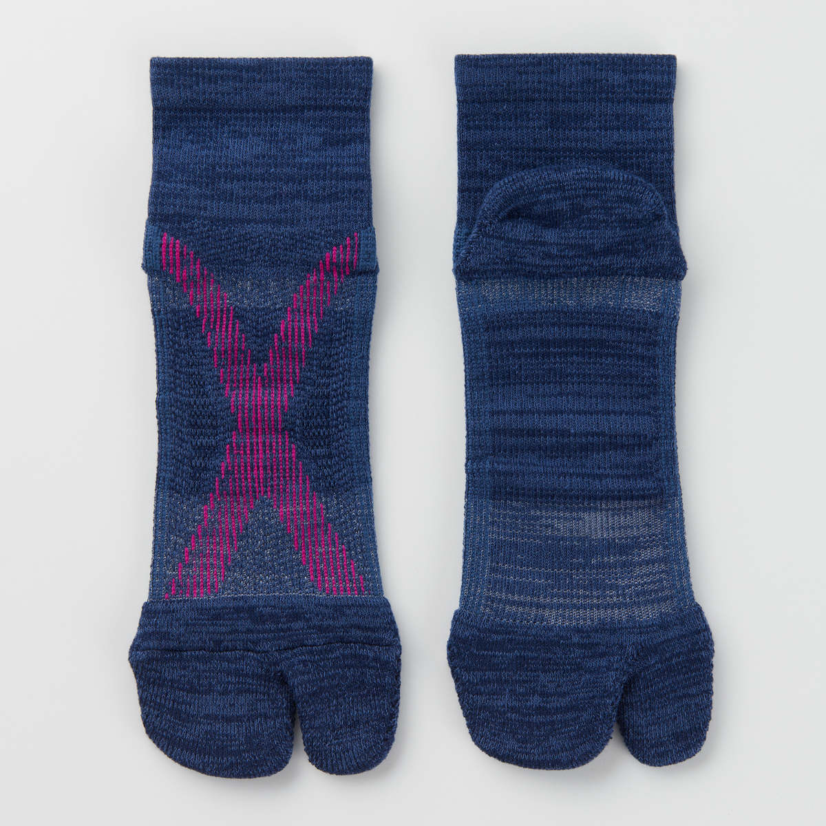 疲れにくい歩き方をサポートする高機能ウォーキングソックスです。足袋型形状で指に力が入りやすく、踏ん張りの効いた安定した歩行を実現します。