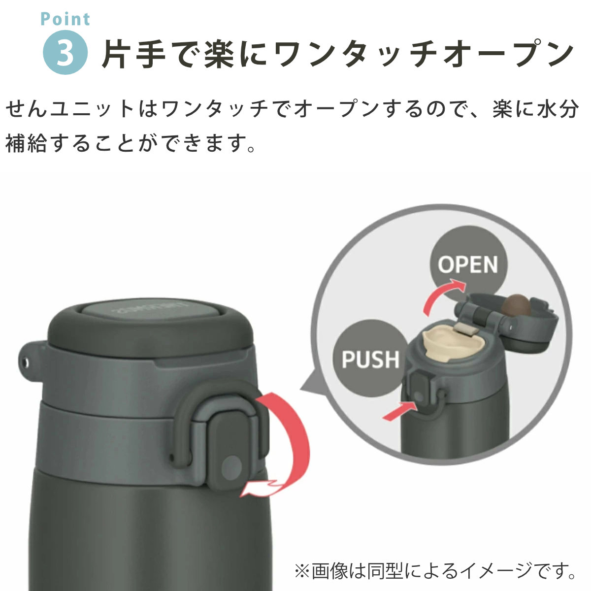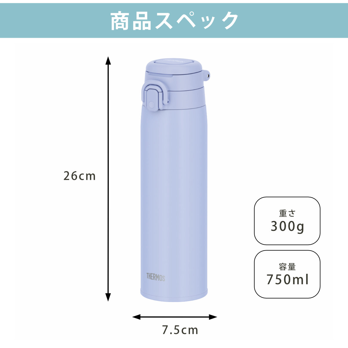 | 材質 | 内びん:ステンレス鋼 胴部:ステンレス鋼(アクリル樹脂塗装) ループ・フタ・せん本体:ポリプロピレン 飲み口:ポリプロピレン フタパッキン:シリコーンゴム せんパッキン:シリコーンゴム |