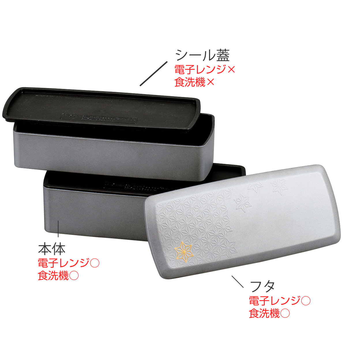 ![]() スクエア箸箱 銀研・黒炭 | ![]() 長角コンビニ弁当箱 910ml 2段 銀研・黒炭 | ![]() 一段ランチ弁当箱 800ml |