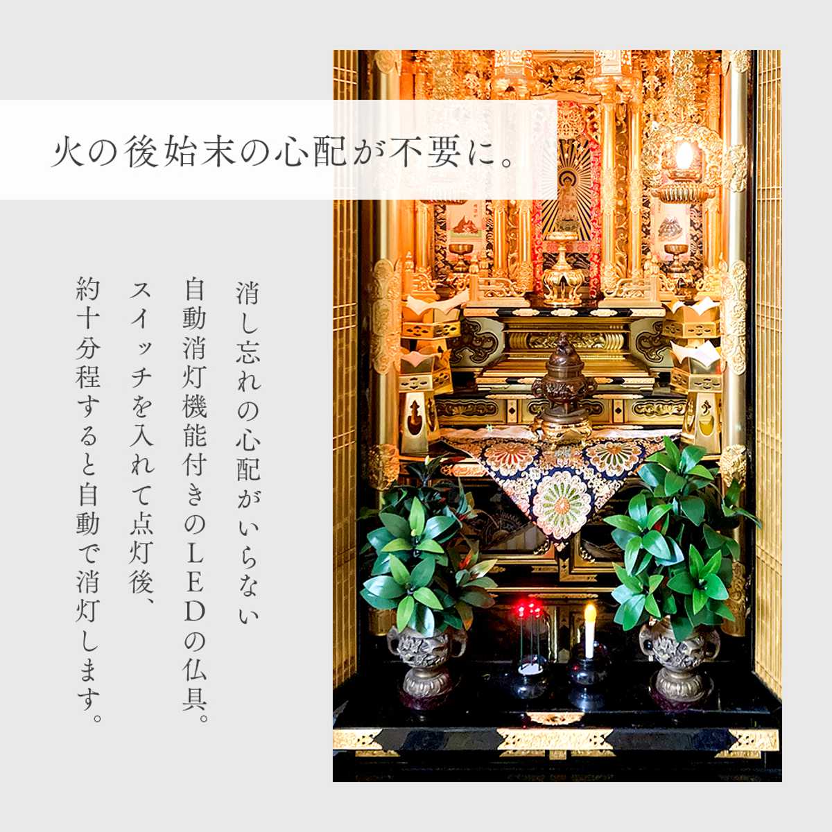 ![]() 火を使わない LEDローソク 【▲このページの商品】 | ![]() 火を使わない LED線香 |