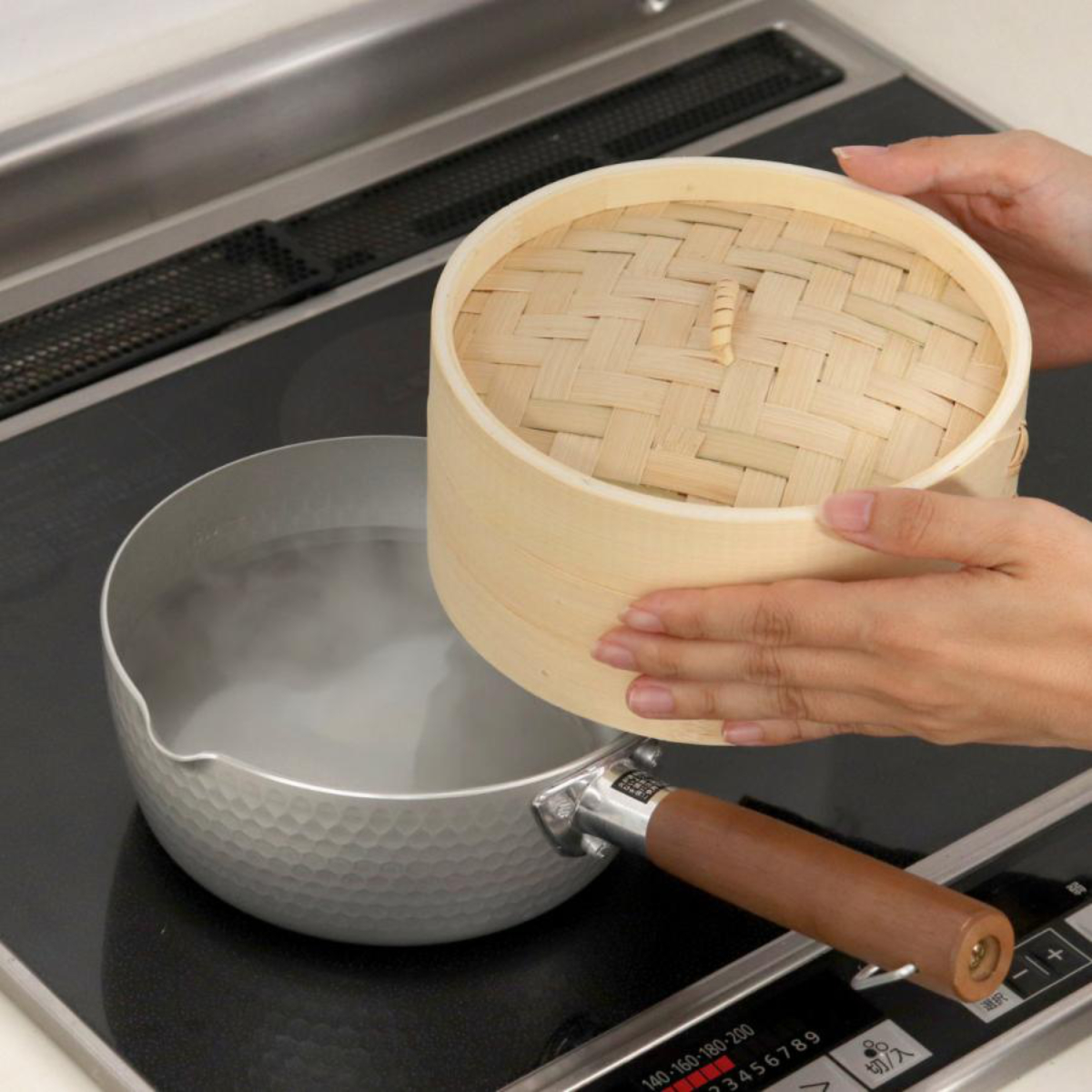 3.鍋の湯が沸騰したら、せいろを載せてフタをセットします。
