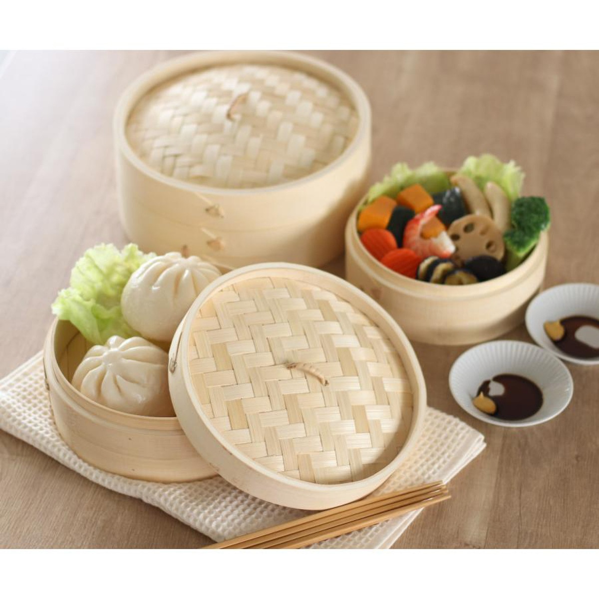 天然素材が余分な水分を吸収してくれるので美味しく調理できます。竹は耐熱性・耐久性・通気性が高く、初めてせいろを使う方にも扱いやすい素材です。蒸した時の香りが少ないので、木のにおいが苦手な方にもおすすめです。