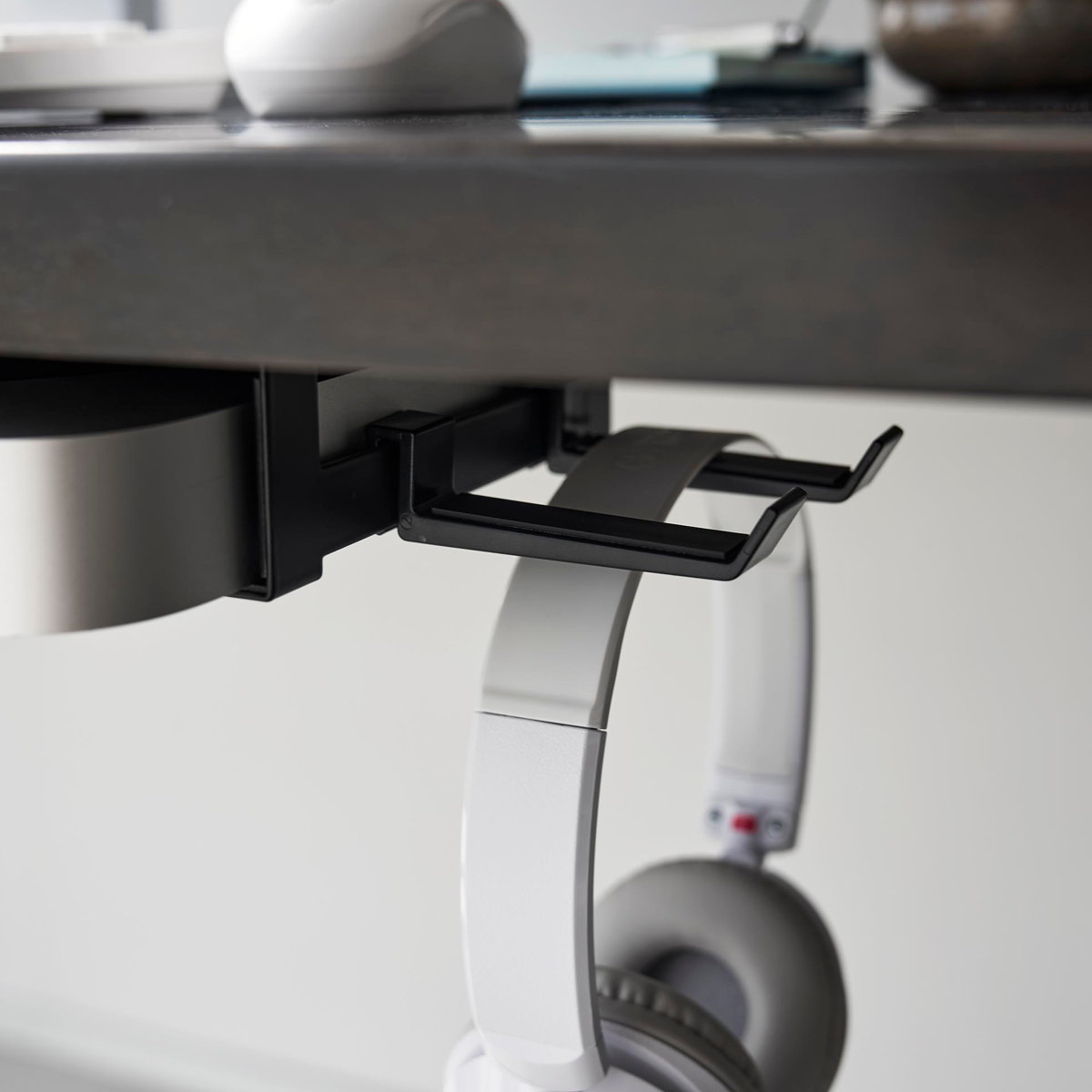 ラックを縦横どちらの向きに設置しても、取り付け可能なロングフックが2個付属しており、掃除道具やヘッドホンの収納に便利です。