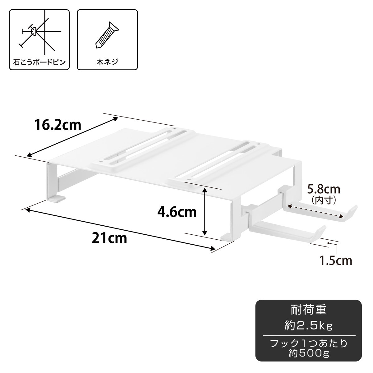 | 耐荷重 | 約 2.5kg ※但しフック1つあたり:約 500g(静止荷重) |