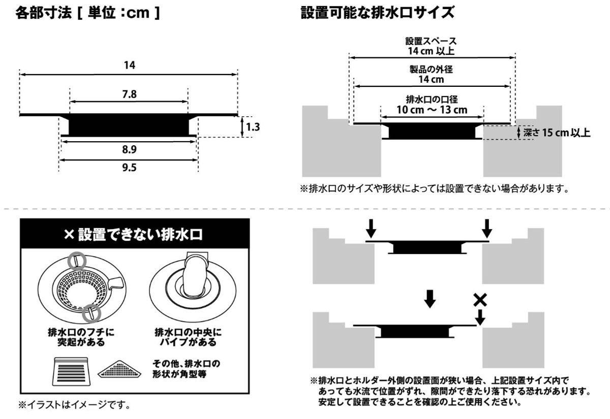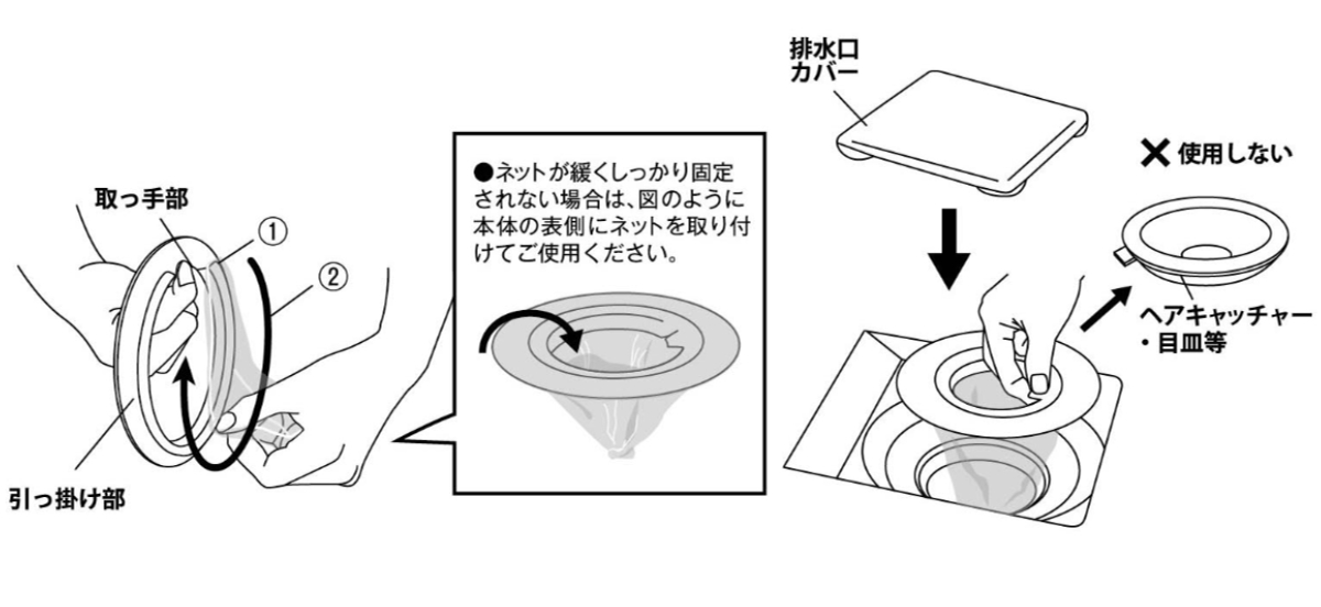 3.本体を排水口にセットし、排水口カバーを元に戻してご使用ください。
