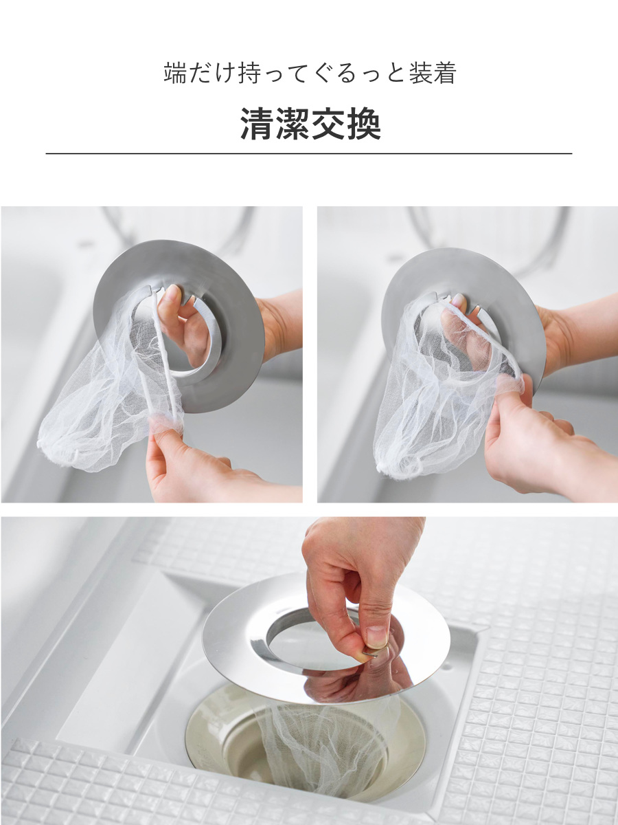 触れずに清潔!簡単交換、排水口ホルダー