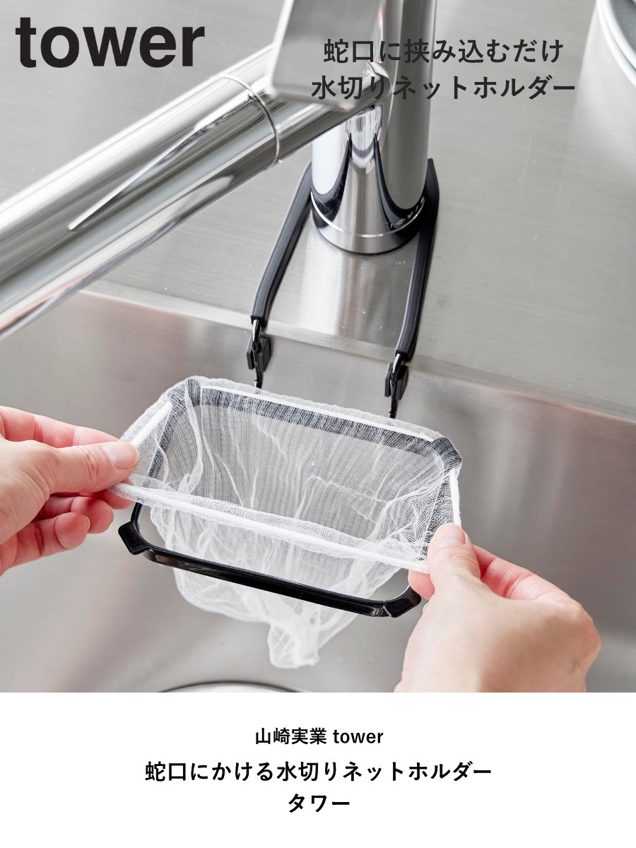 ![]() コーナーに置ける水切りネットホルダー タワー スクエア | ![]() 水切りネットが付けられる三角コーナー タワー |