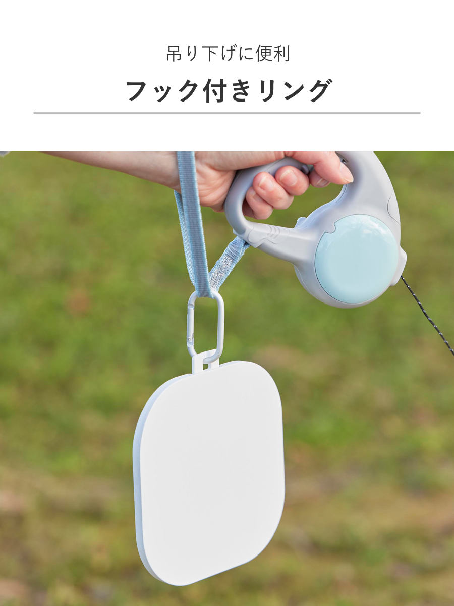 吊り下げに便利なフック付きリングも付属しています。暑い日のお出かけの時には、サッと水分補給ができるようにリードと一緒に持ち運べます。