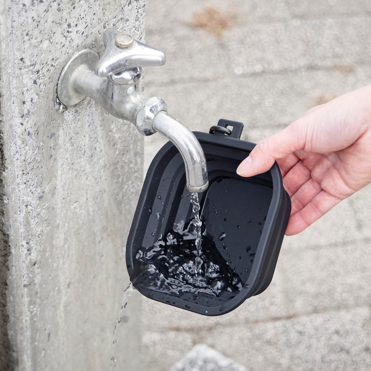 フタ付きで持ち運びに便利な折り畳み式のペットフードボウルです。お散歩や旅行など、長時間のお出かけにも荷物を増やさずに持ち運べます。容量は450mlと小型犬や猫にぴったりのサイズです。シリコーン素材でズレにくく、夢中で食べても安心です。