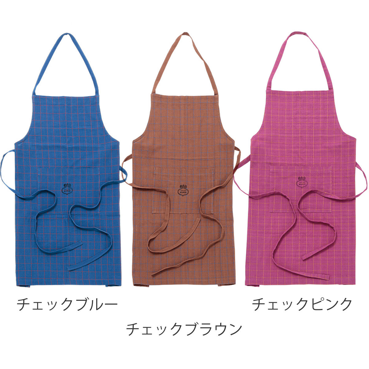 インドの伝統的な手織り技法「カディ織り」で仕立てたエプロンです。目の細かいカディ生地は、手織りならではのやさしい風合いと柔らかくしなやかな生地感で、日常使いしやすいのが特長です。