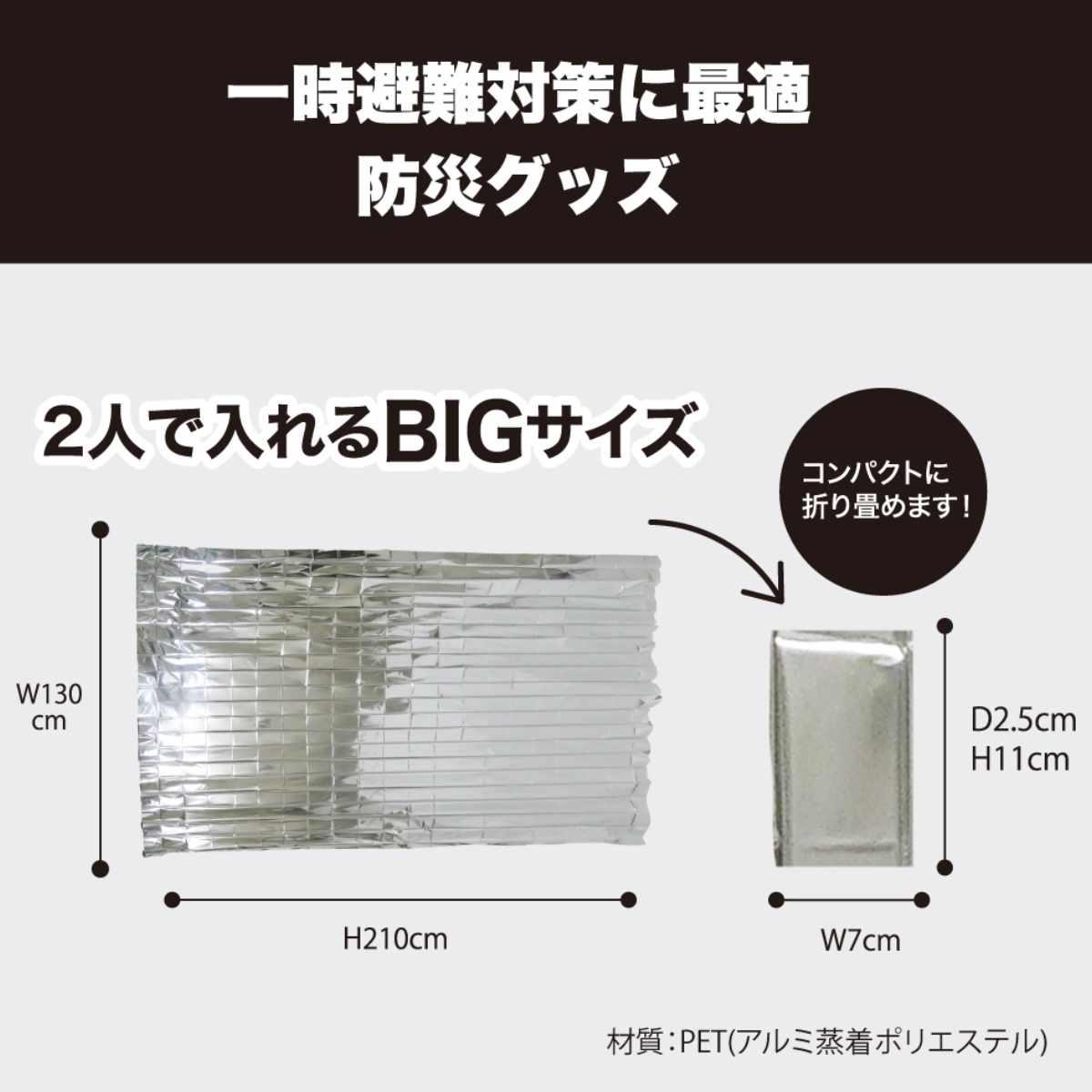 大人2人でも入れるゆったりサイズです。親子やご家族で一緒に使用でき、非常時の防寒対策におすすめです。