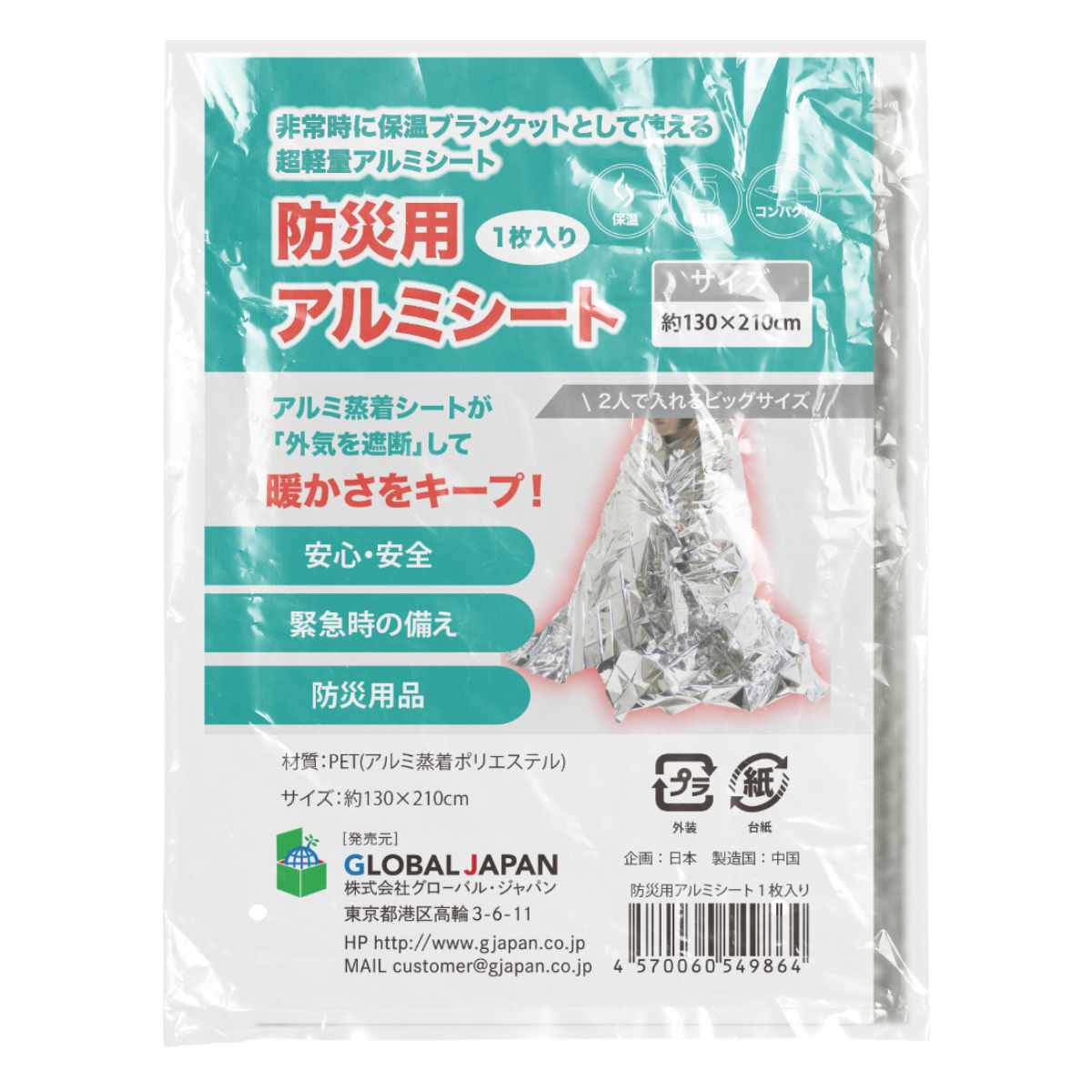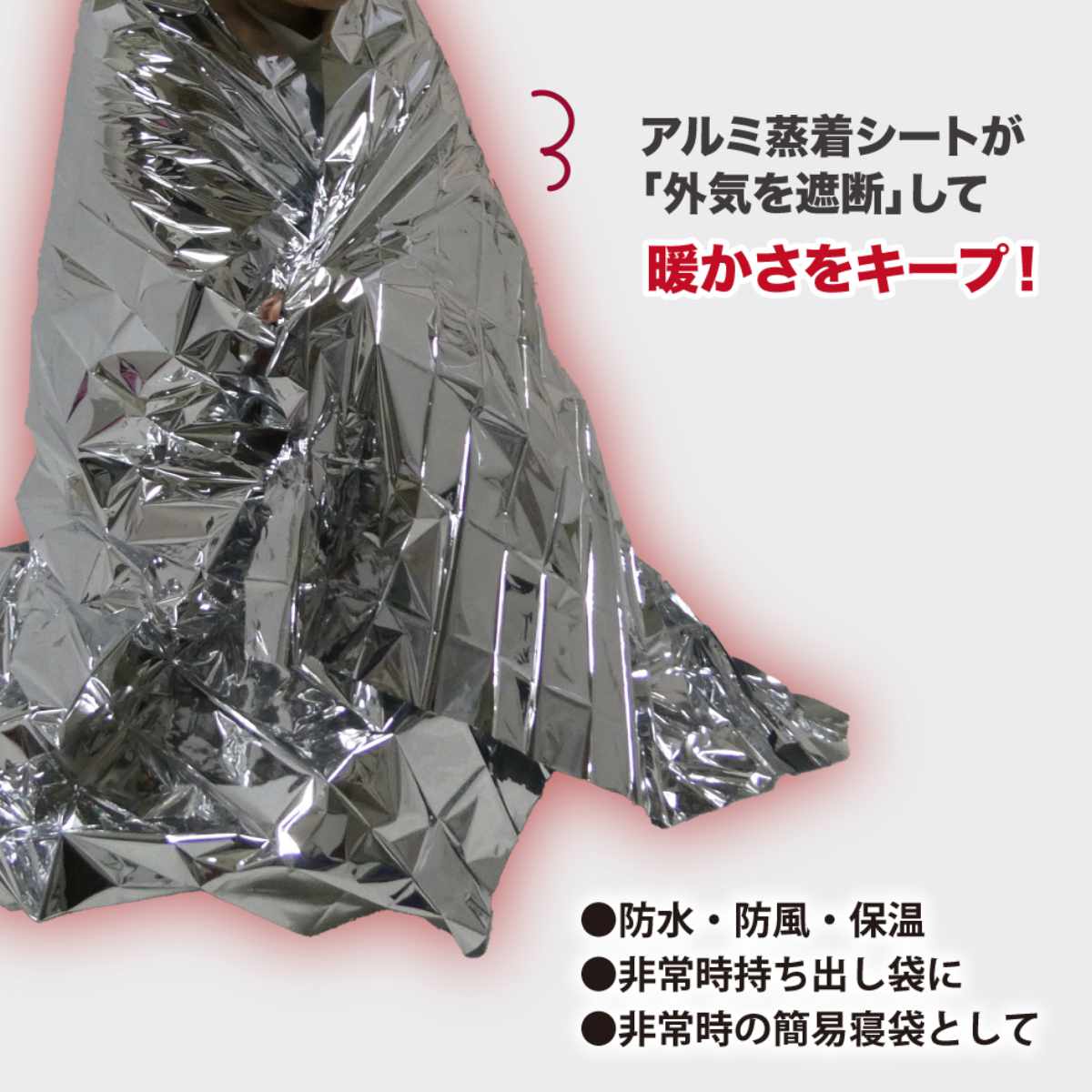 ●外気の温度変化や雨風・災害などから身を守るアルミシートです。