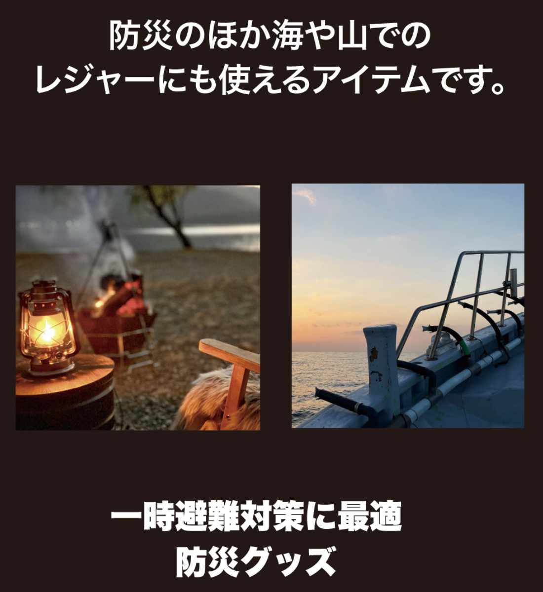 自宅やオフィスの災害対策としてはもちろん、気候の変動があるアウトドア時や海水浴などで体が冷えた時などレジャーの備えにぴったりです。