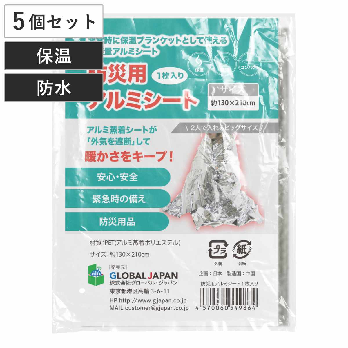 外気の温度変化や雨風・災害などから身を守るアルミシートです。寒さから身を守りたいときや雨風をしのぎたいときに活躍します。マントのように体を覆ったり、寝ている上からかけたりと便利にお使いいただけます。