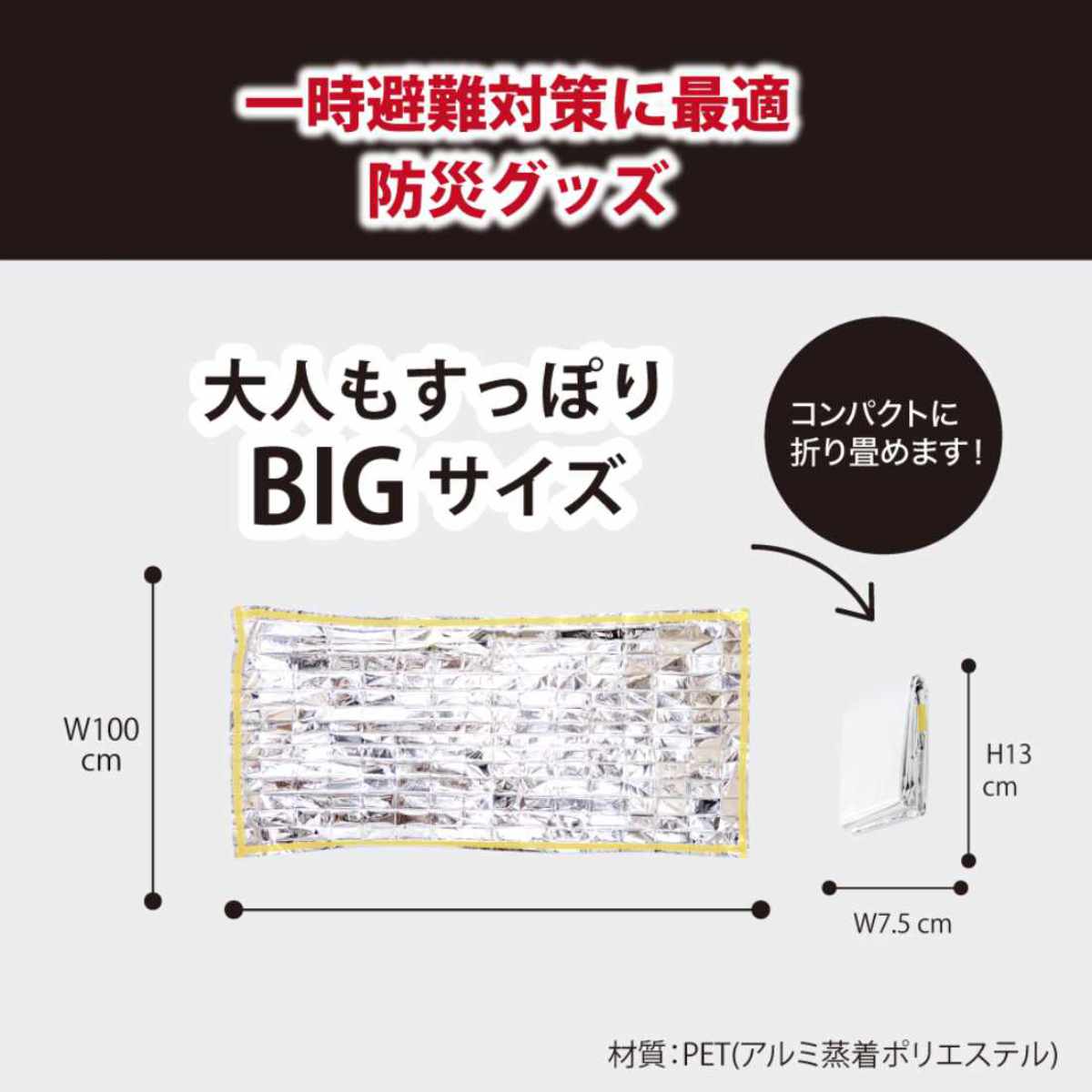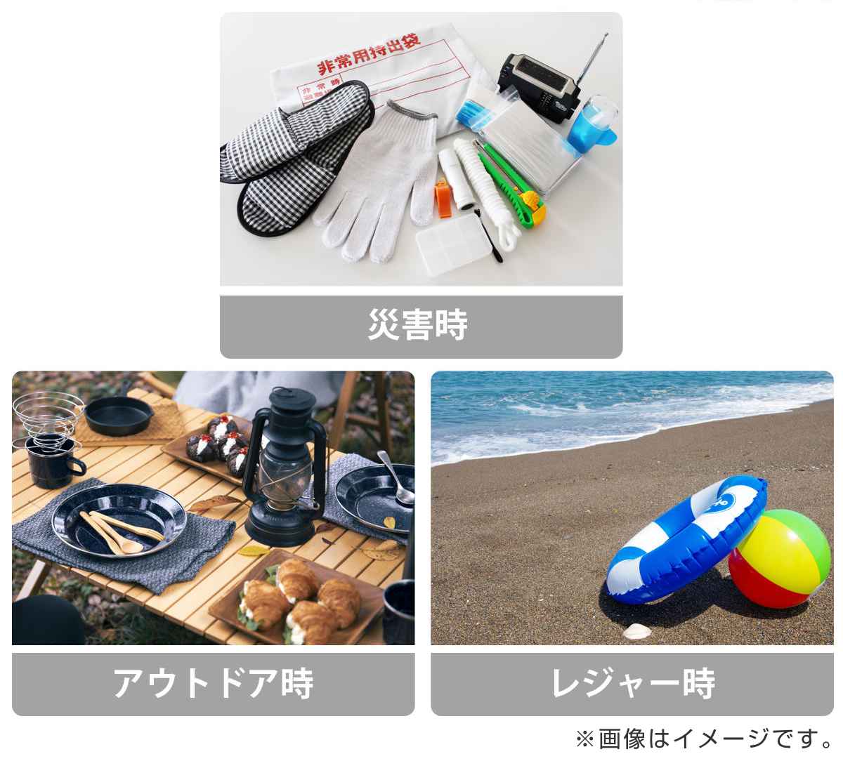 自宅やオフィスの災害対策としてはもちろん、気候の変動があるアウトドア時や海水浴などで体が冷えた時などレジャーの備えにぴったりです。