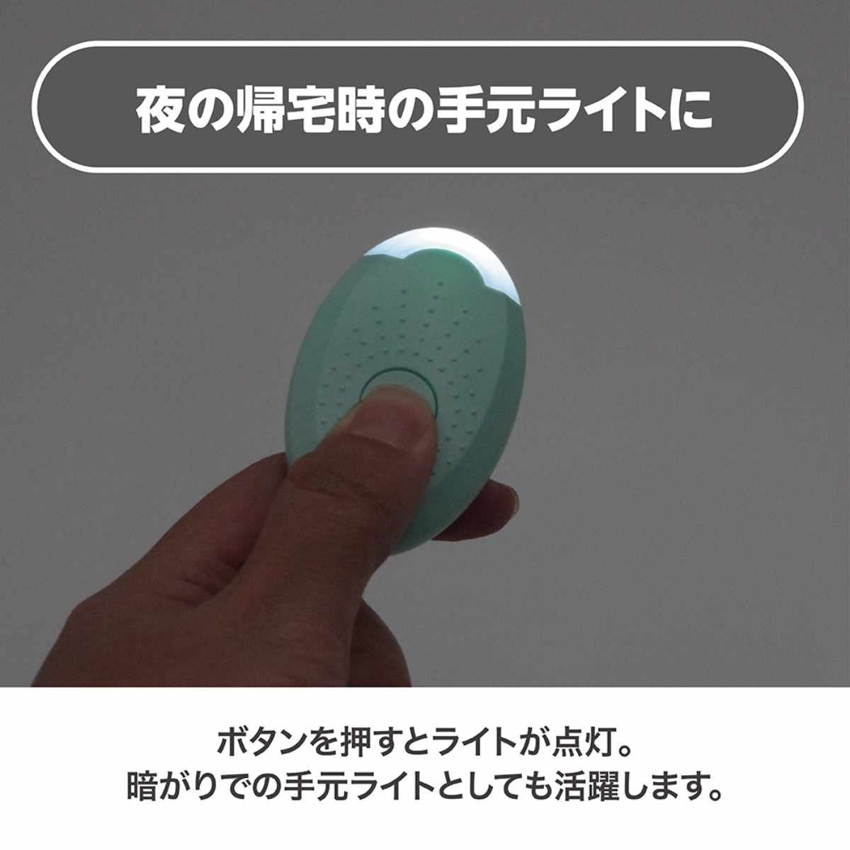 ボタンを押すとライトが点灯し、暗い道でも足元や周囲を確認できるため、夜の帰宅時の防犯対策として役立ちます。