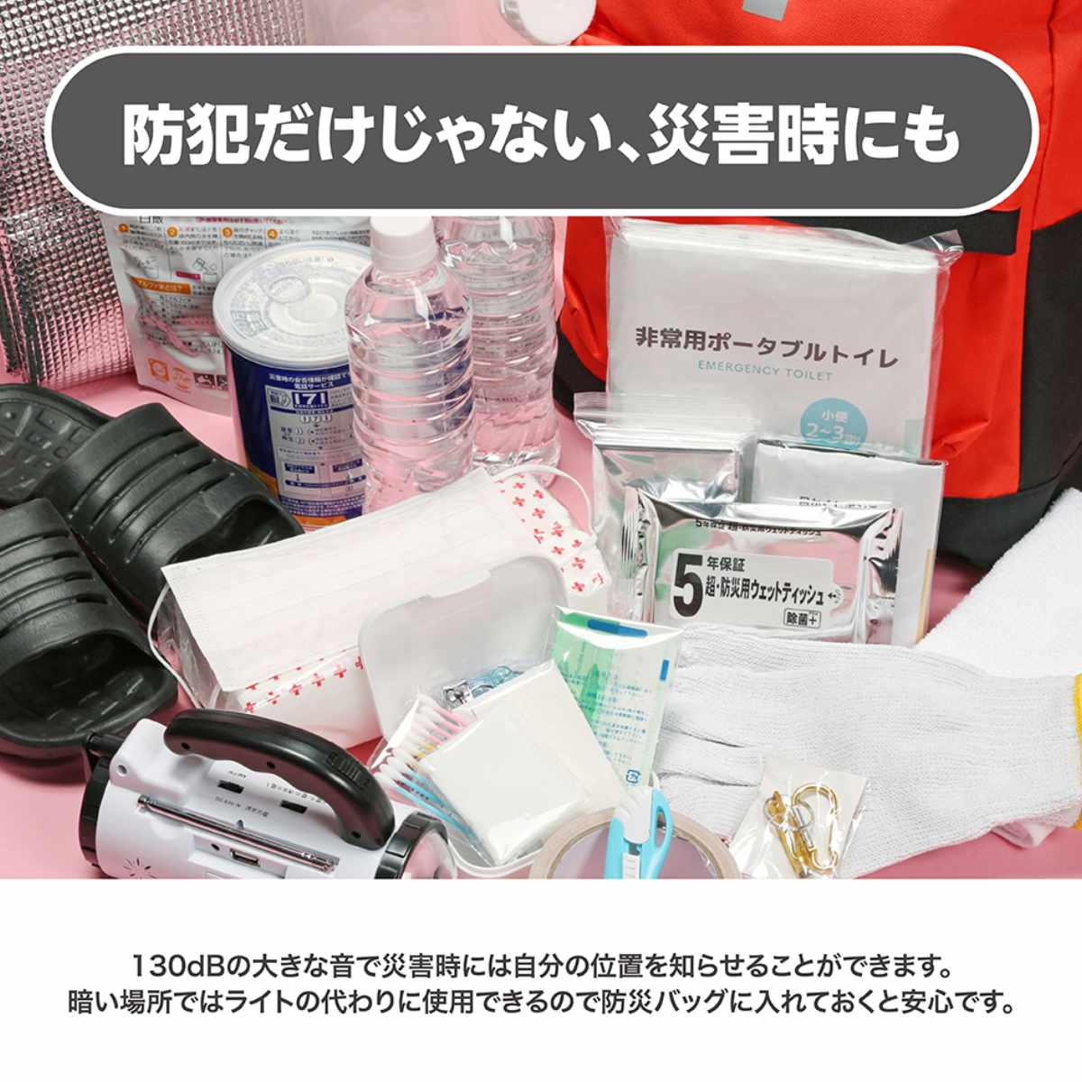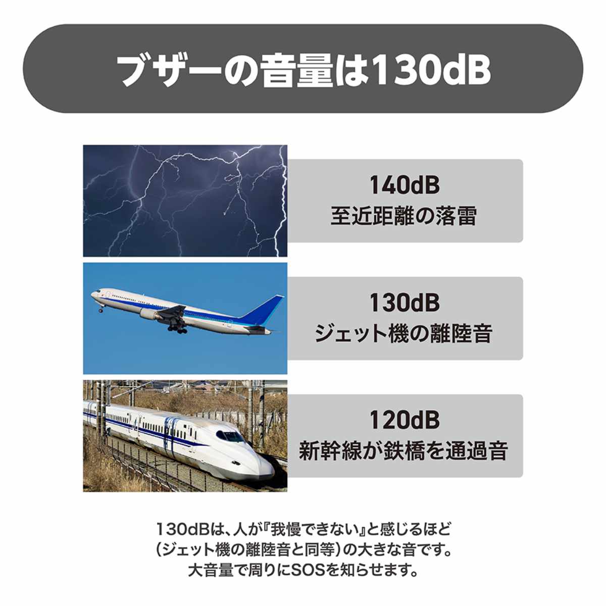 ●130dBの大きな音で、災害時や緊急時に自分の位置を周囲に知らせることができます。