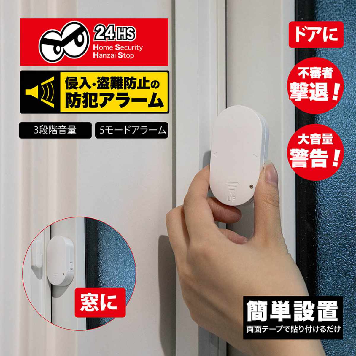 ●ドアが開くとセンサーが感知し、大音量で警告音を発する防犯アラームです。