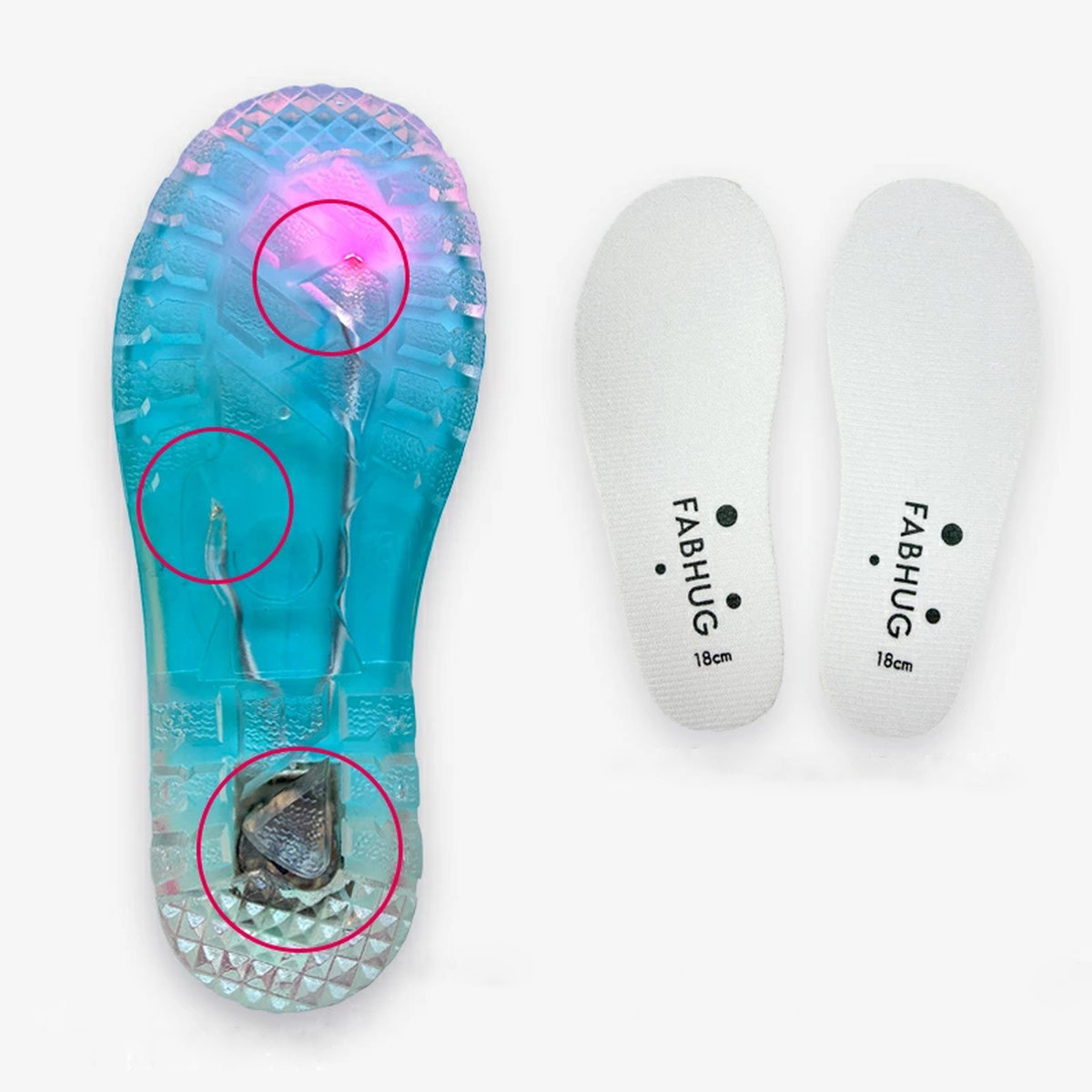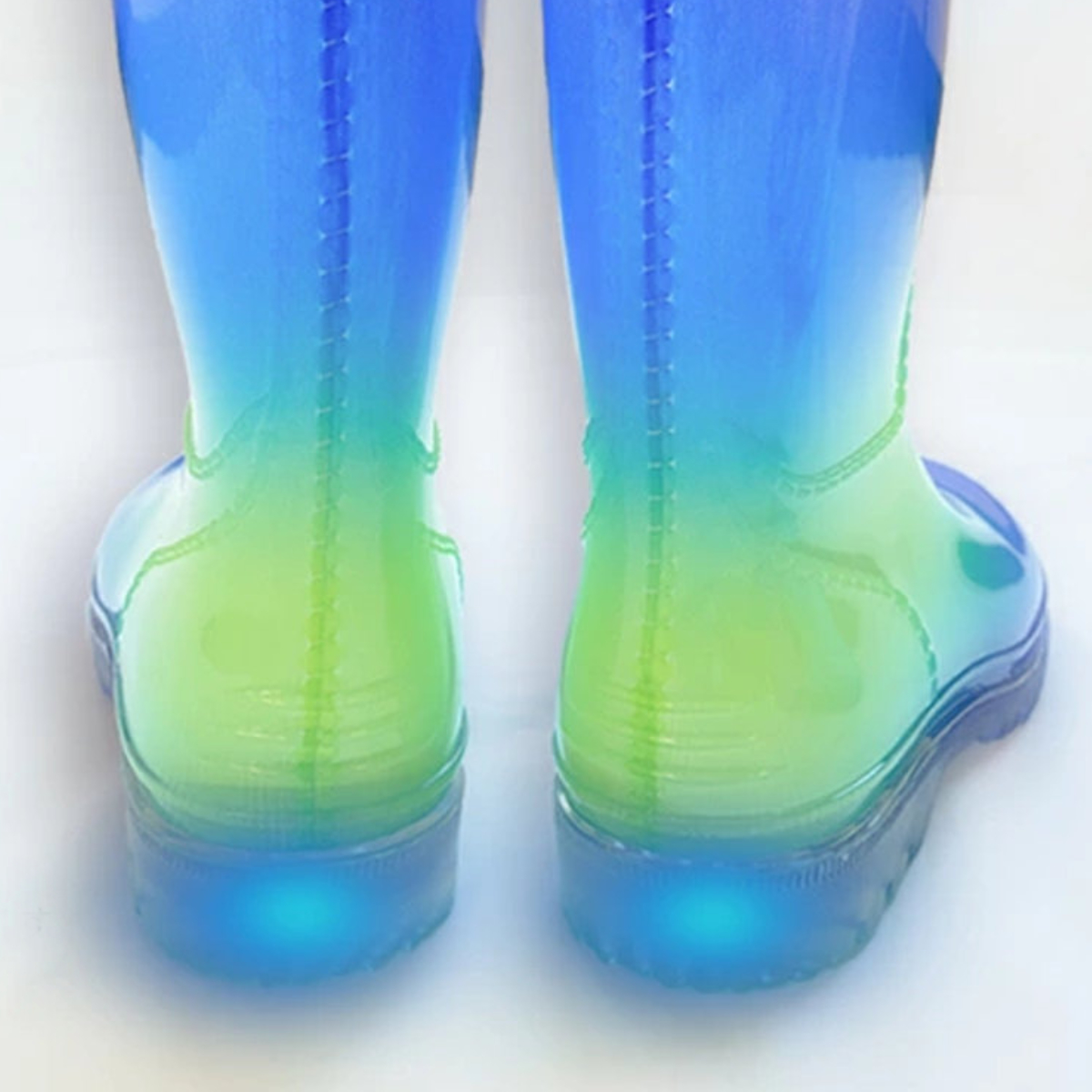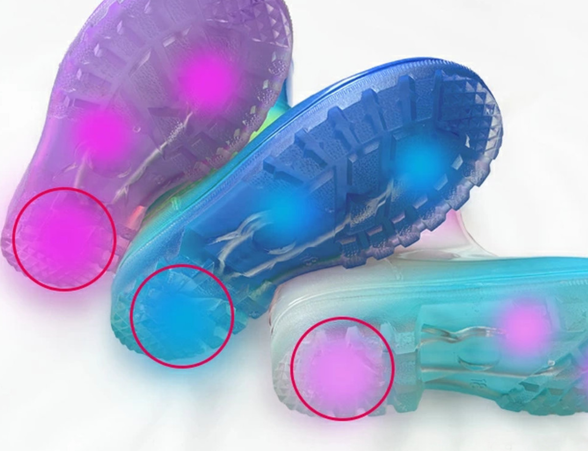 歩く度にに反応して「ピカピカ」とカラフルに光るレインシューズ