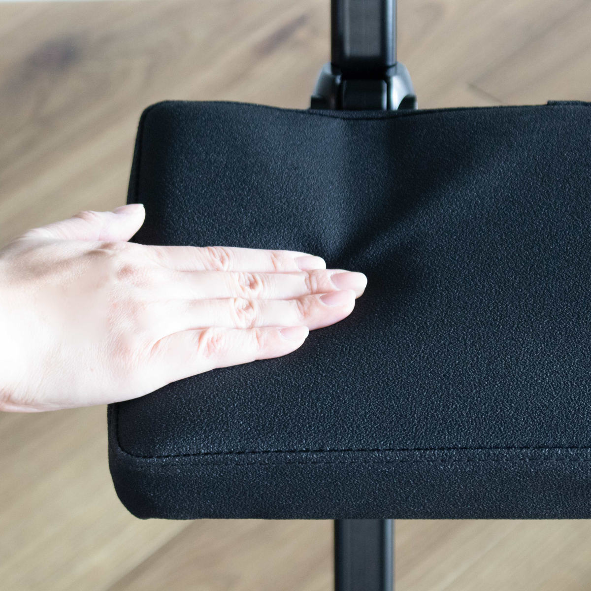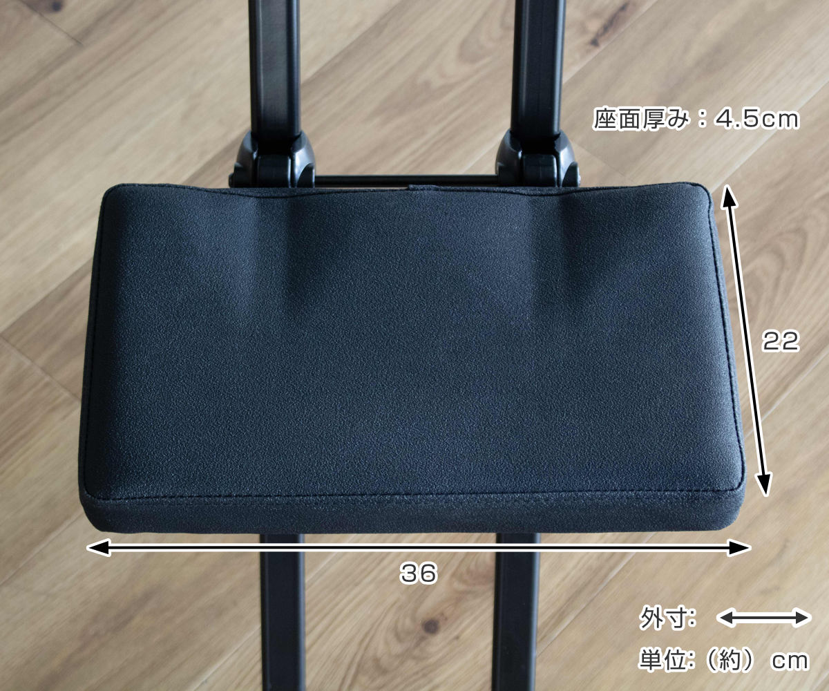 ほどよい弾力のあるクッション座面で、快適に座れます。また、滑りにくい生地を採用しているので、座っていても前滑りしにくく安心です。水濡れにも強く、キッチンや洗面スペースでも使いやすいです。