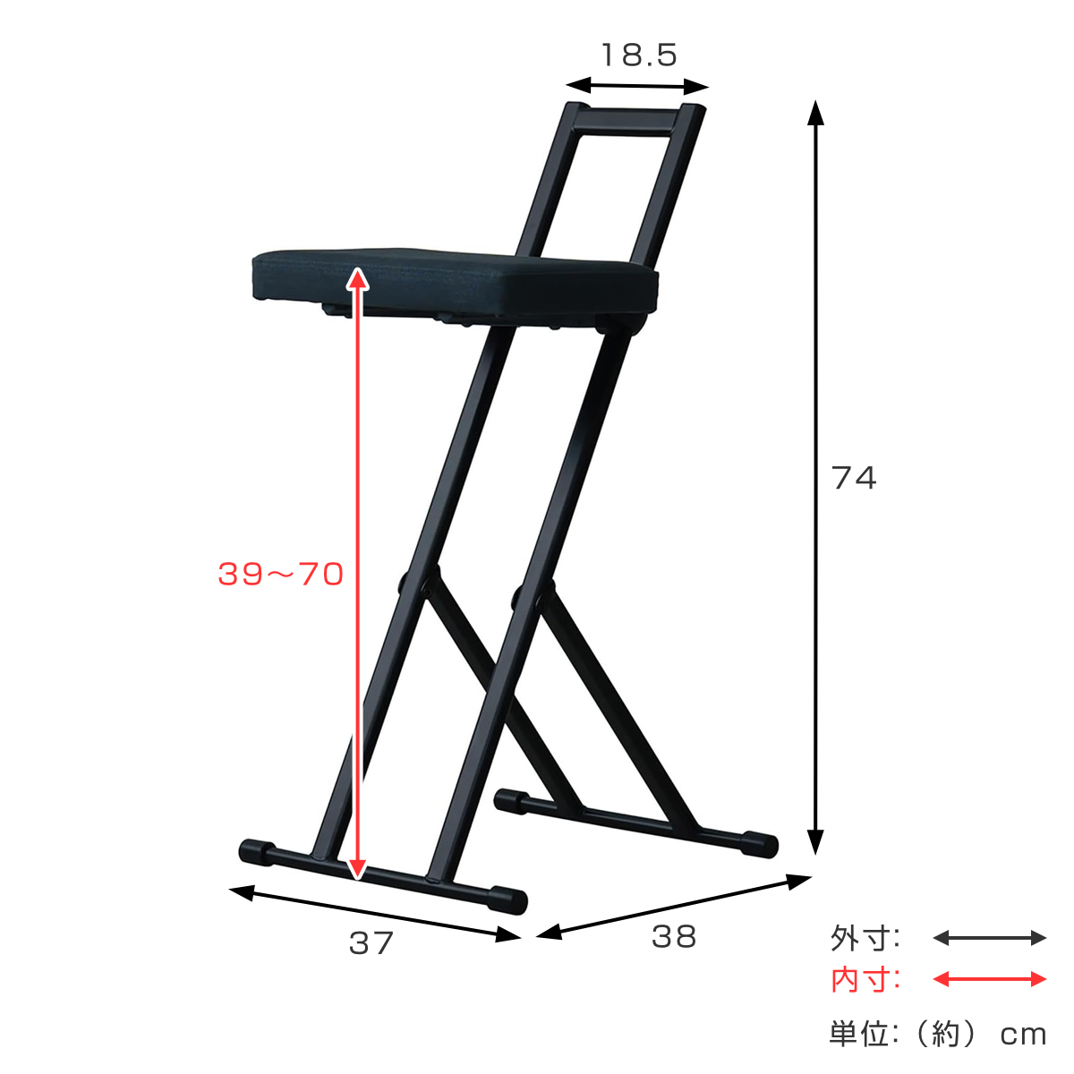 | サイズ | 約 幅37×奥行38×高さ74(cm) 座面高:約 39~70(cm) |