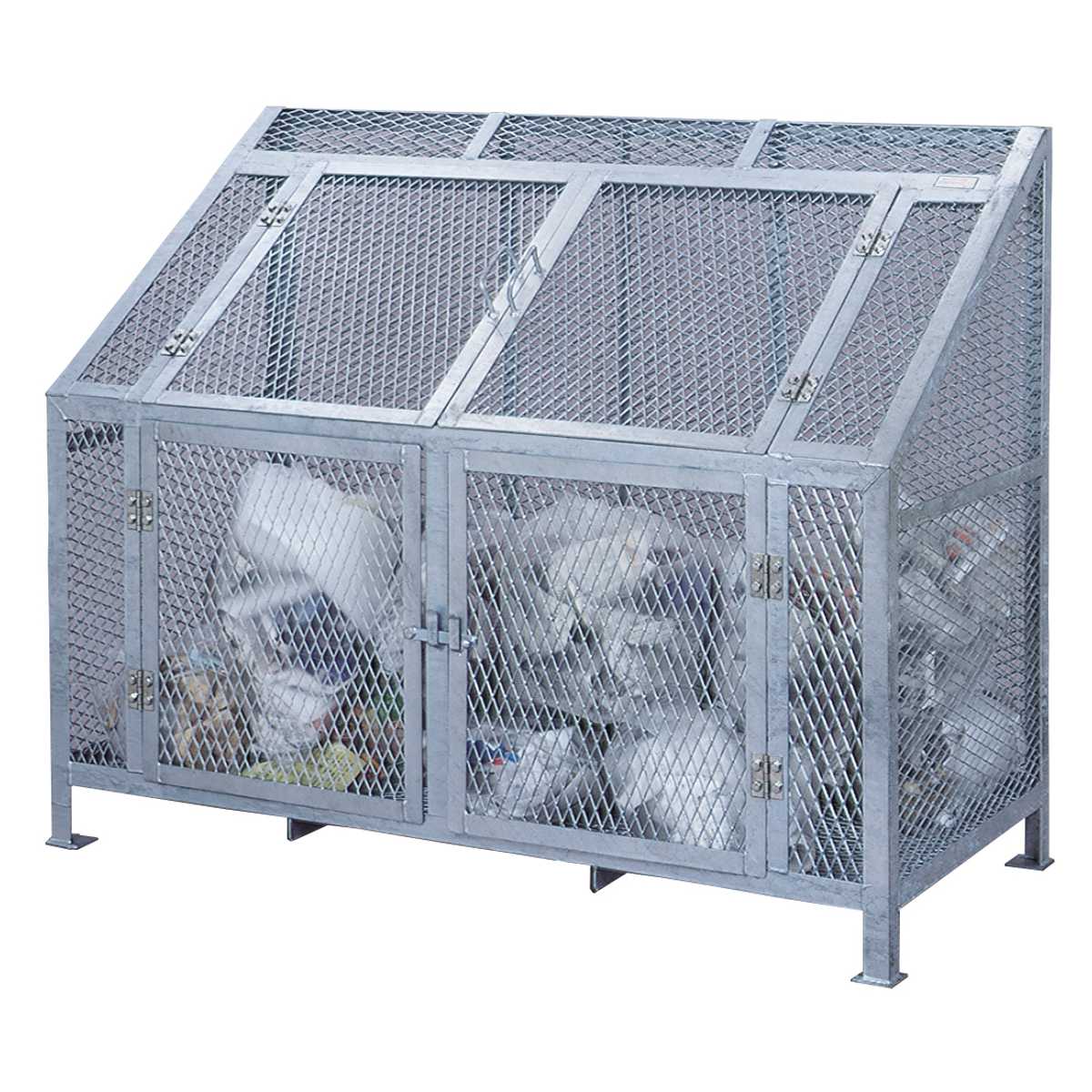 かさばりがちな可燃ごみや資源ごみをまとめて収納でき、ゴミ出しまでの一時保管に便利な業務用ダストボックスです。上部と前面の4つの扉が開閉する観音開き仕様で、ゴミの投入や回収作業もスムーズに行えます。