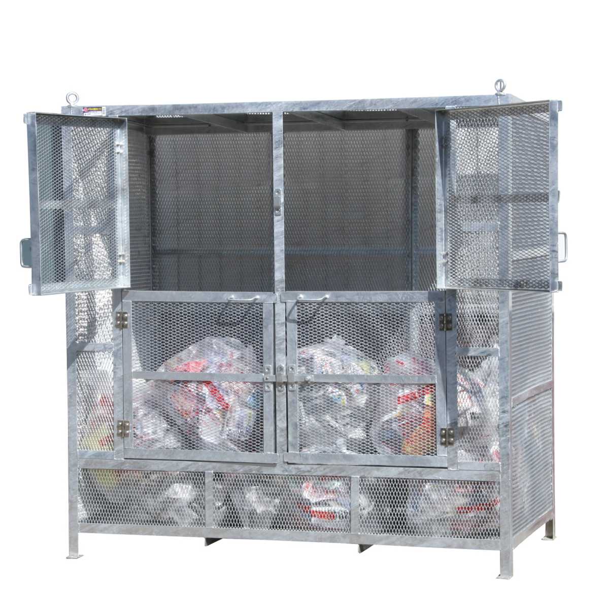 かさばりがちな可燃ごみや資源ごみをまとめて収納でき、ゴミ出しまでの一時保管に便利な業務用ダストボックスです。4つの扉が開閉する観音開き仕様で、ゴミの投入や回収作業もスムーズに行えます。