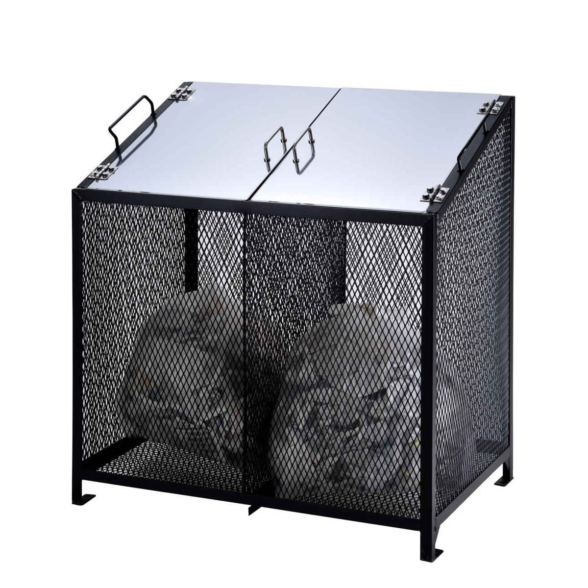 本体は粉体塗装(ブラック)仕上げで、落ち着いた外観なので、観光地や施設、建物周辺の景観を損なわずに設置できます。犬・猫・カラスなどによる被害を防ぎ、屋外でのゴミ管理を安全・衛生的に行えます。約330Lの収納容量があり、45Lゴミ袋を約37袋収納可能で、内部には分別に便利な中仕切りが付いています。
