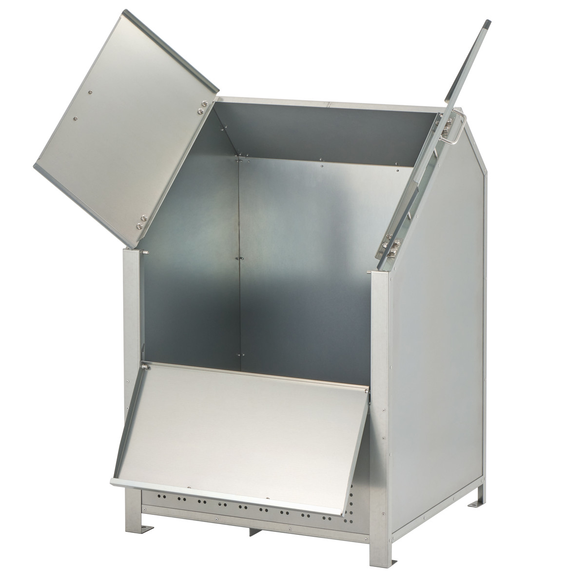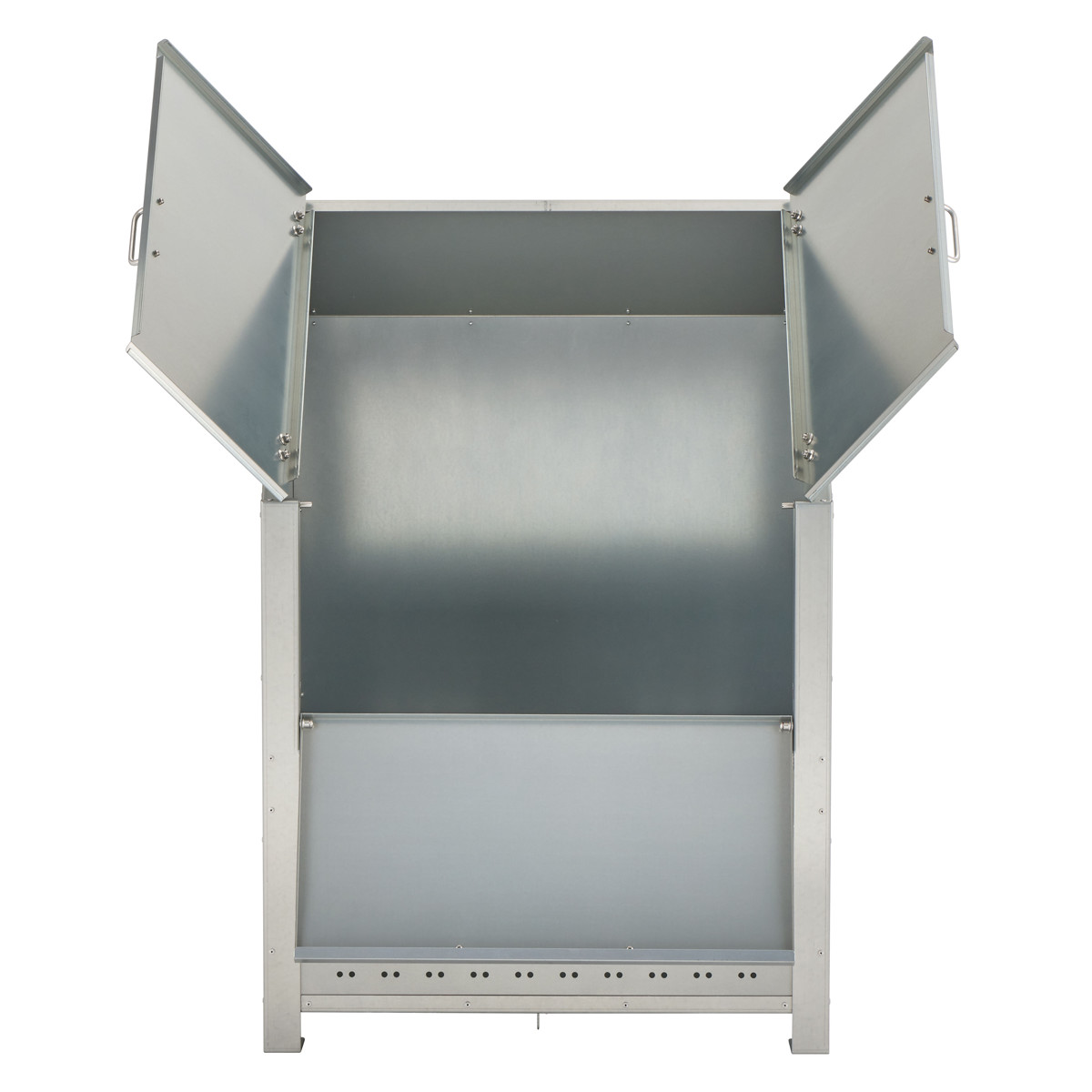 | 材質 | 本体・扉:高耐食溶融めっき鋼板 金具・ネジ:ステンレス、アルミ ハンドル:ステンレス(SUS304) ハンドルゴム:ポリ塩化ビニル |