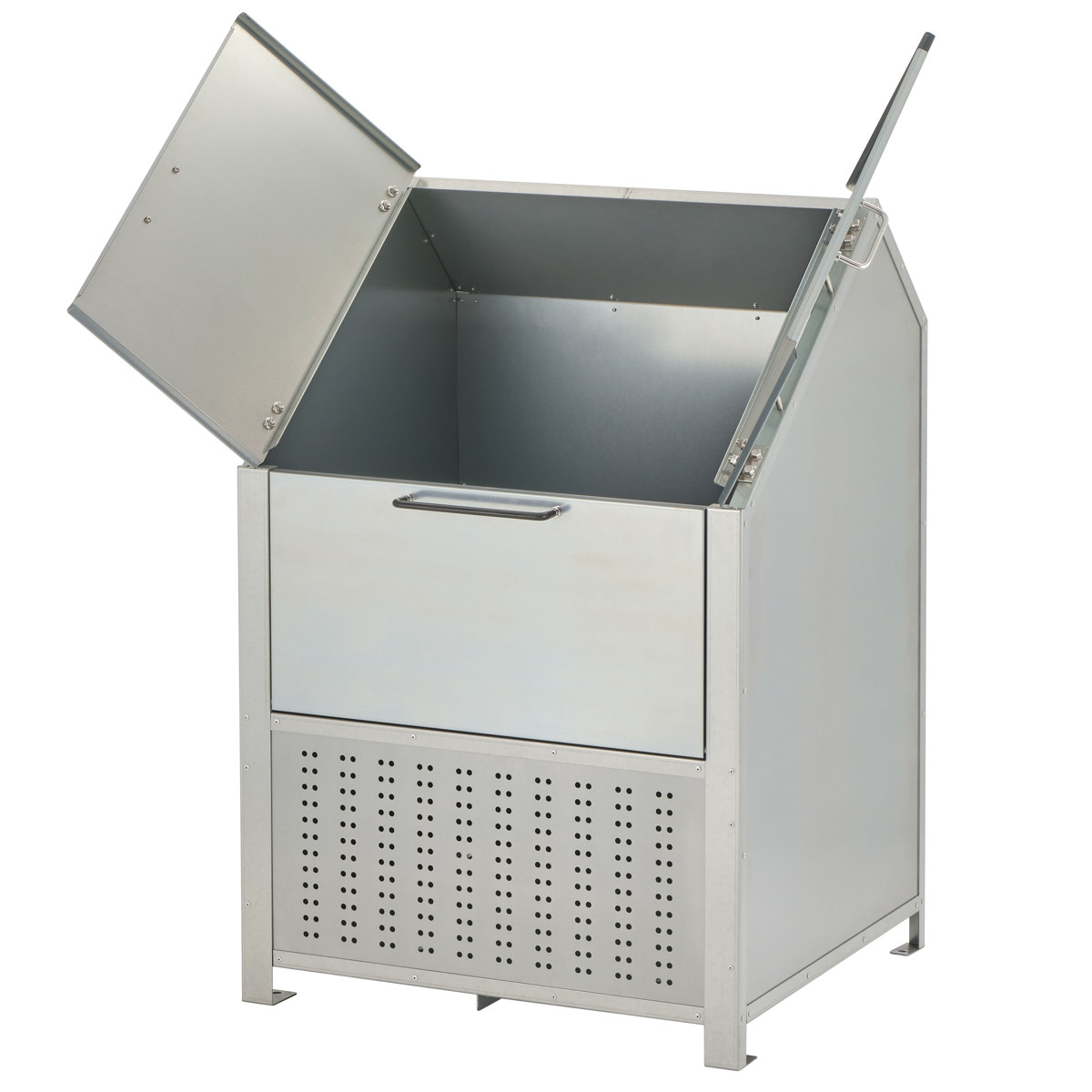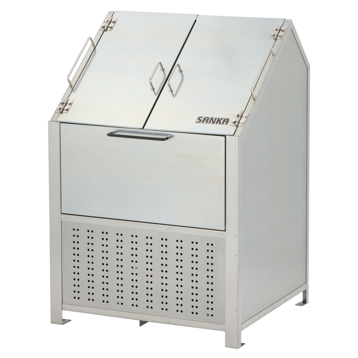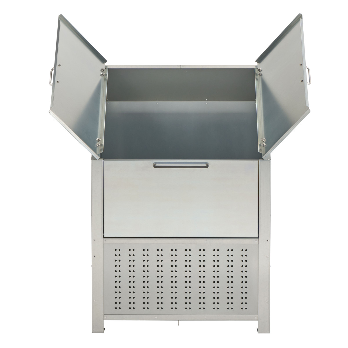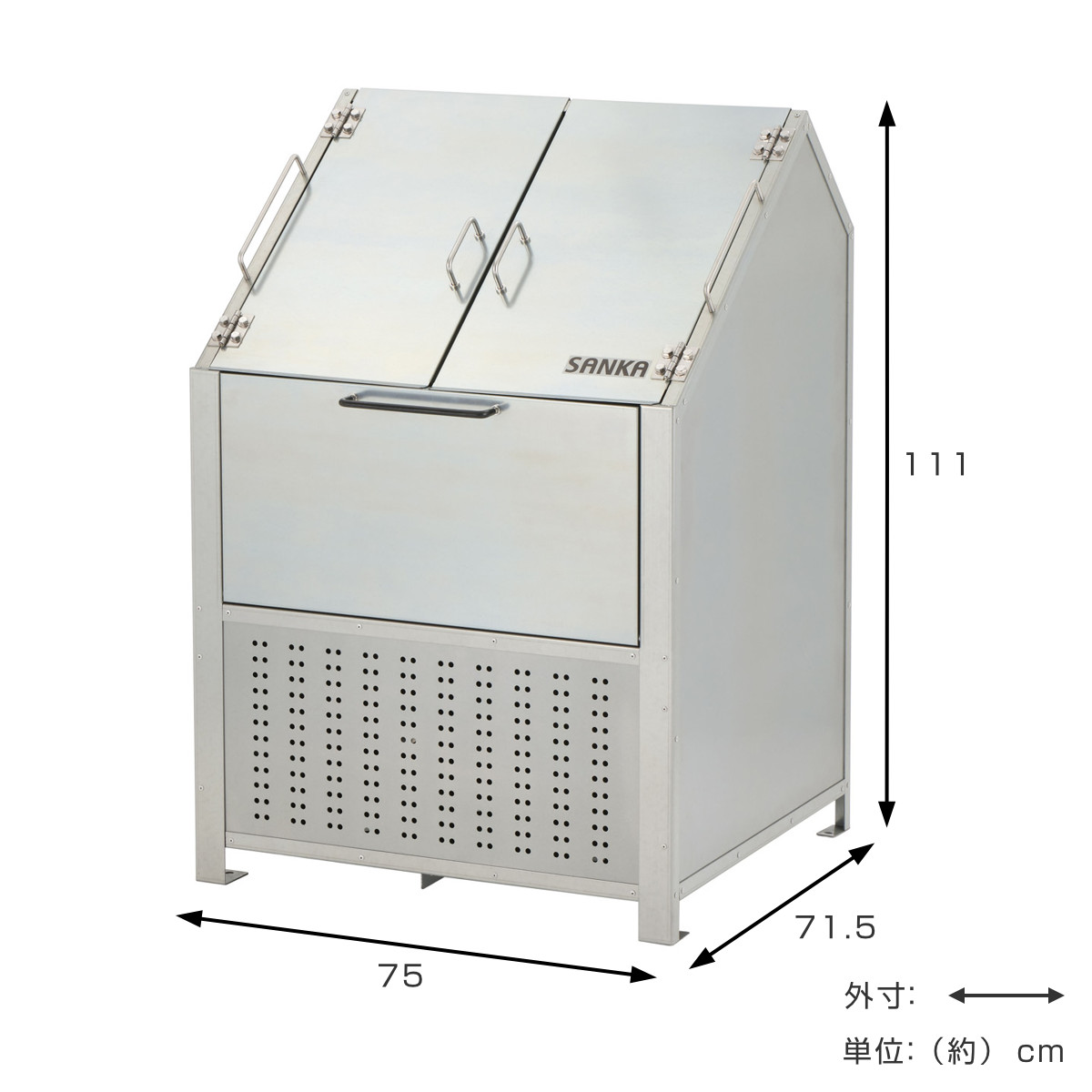 かさばりがちな可燃ごみや資源ごみをまとめて収納でき、ゴミ出しまでの一時保管に便利なゴミ収納庫です。シンプルでスタイリッシュなデザインは、建物まわりや敷地内に設置しても景観を損ねにくいです。