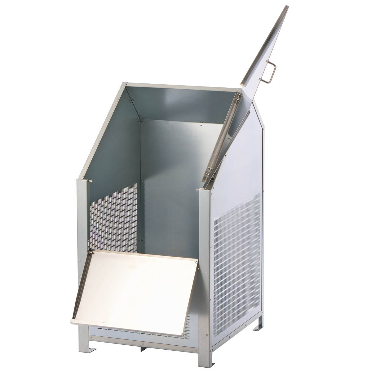 | 材質 | 本体:高耐食溶融めっき鋼板 金具・ネジ:ステンレス、アルミ 扉・ハンドル:ステンレス(SUS304) ハンドルゴム:ポリ塩化ビニル |