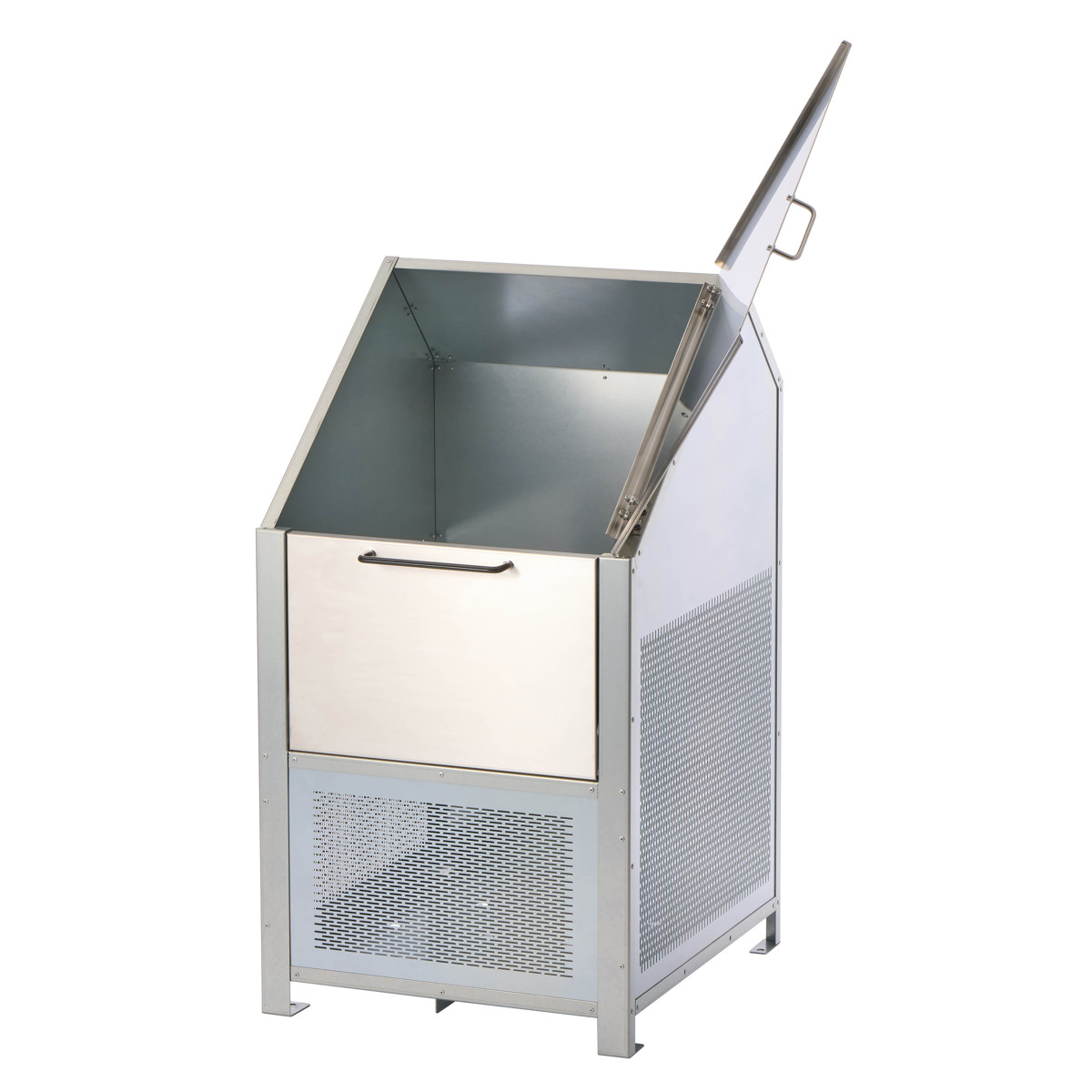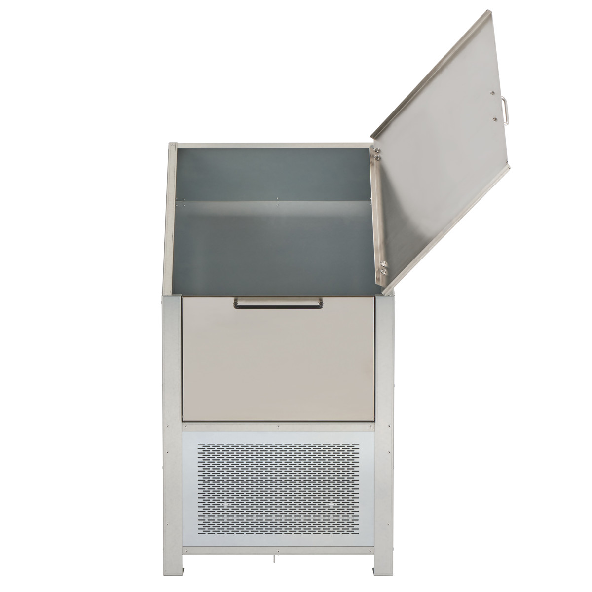 かさばりがちな可燃ごみや資源ごみをまとめて収納でき、ゴミ出しまでの一時保管に便利なゴミ収納庫です。扉はサビに強いステンレス製でお手入れが簡単。シンプルでスタイリッシュなデザインは、建物まわりや敷地内に設置しても景観を損ねにくいです。