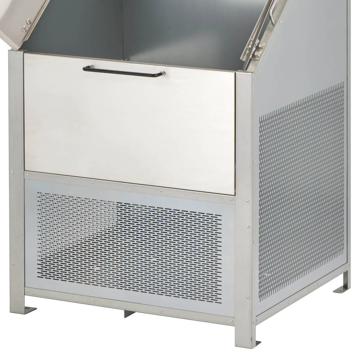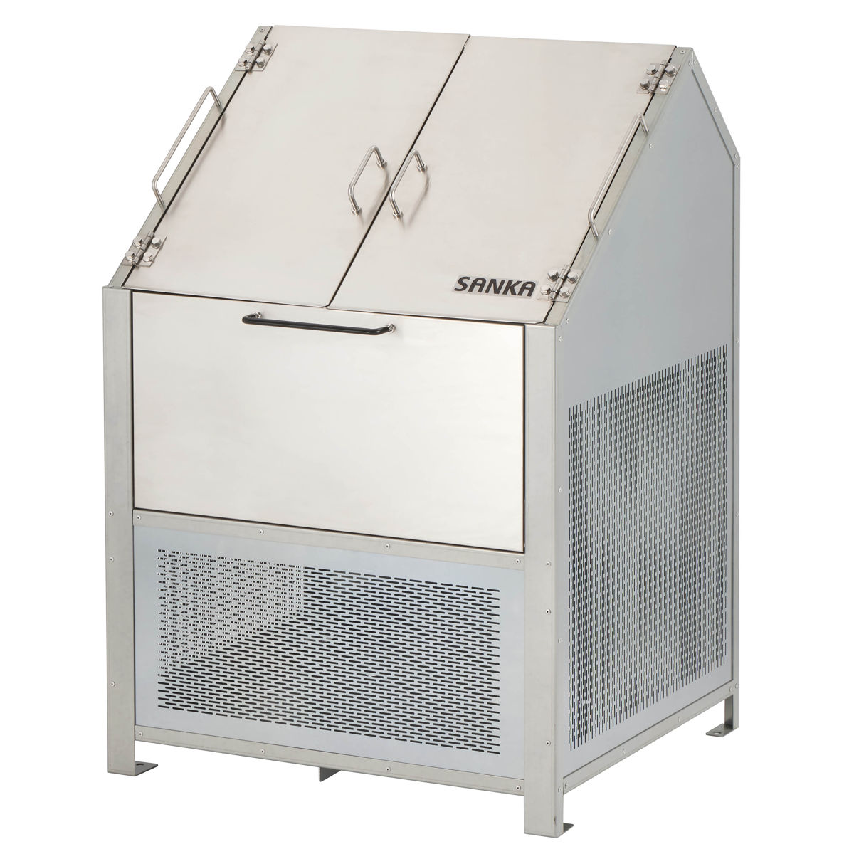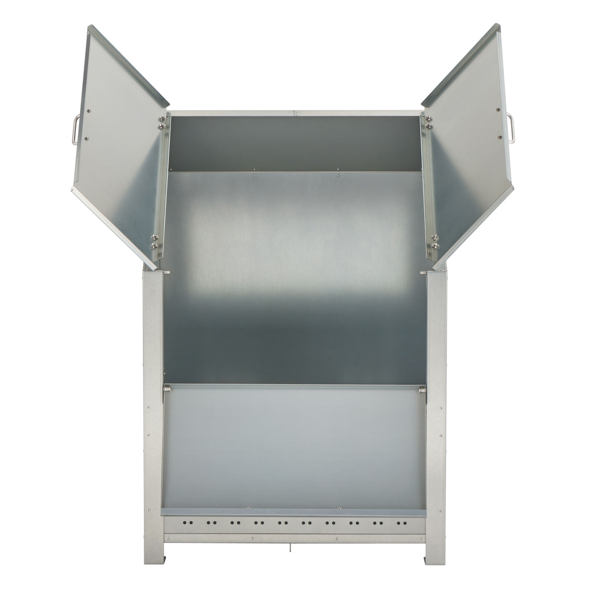かさばりがちな可燃ごみや資源ごみをまとめて収納でき、ゴミ出しまでの一時保管に便利なゴミ収納庫です。扉はサビに強いステンレス製でお手入れが簡単。シンプルでスタイリッシュなデザインは、建物まわりや敷地内に設置しても景観を損ねにくいです。