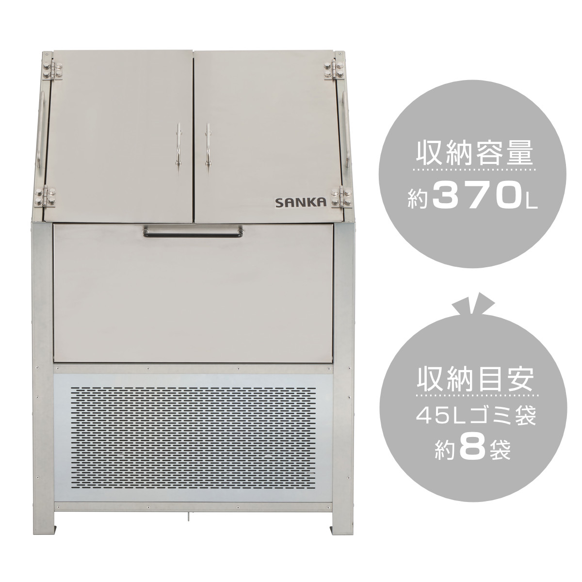 容量は370Lあり、45Lゴミ袋を約8袋収納できます。オフィスや、店舗など日常的にゴミが出る環境でも安心です。