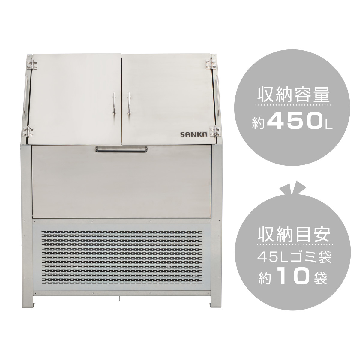 容量は450Lあり、45Lゴミ袋を約10袋収納できます。町内のゴミ集積所や、複数のテナントが入る建物にもおすすめです。