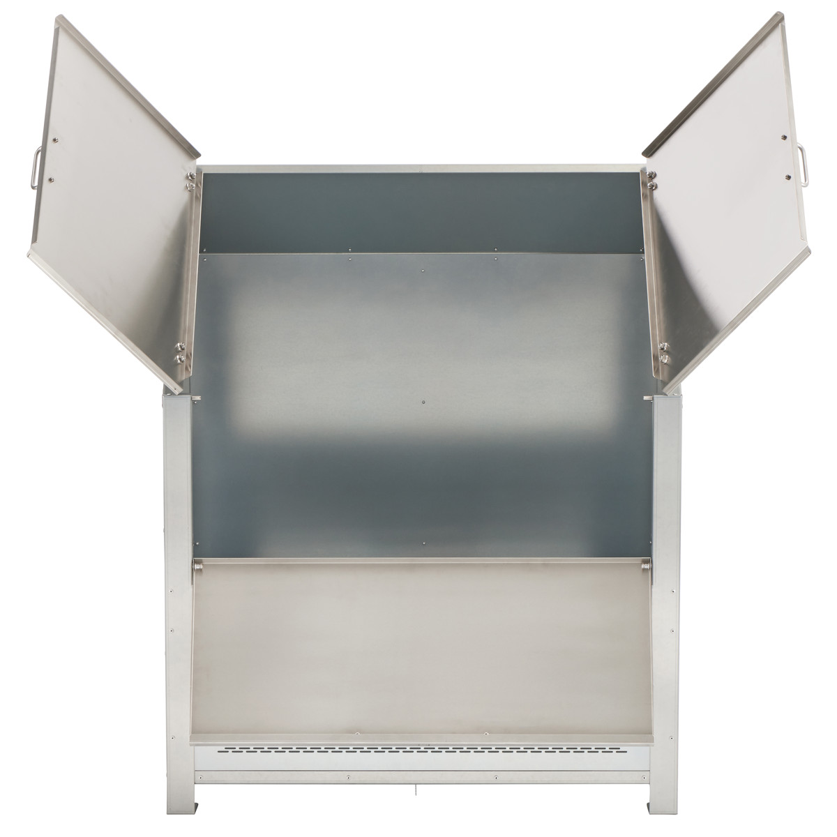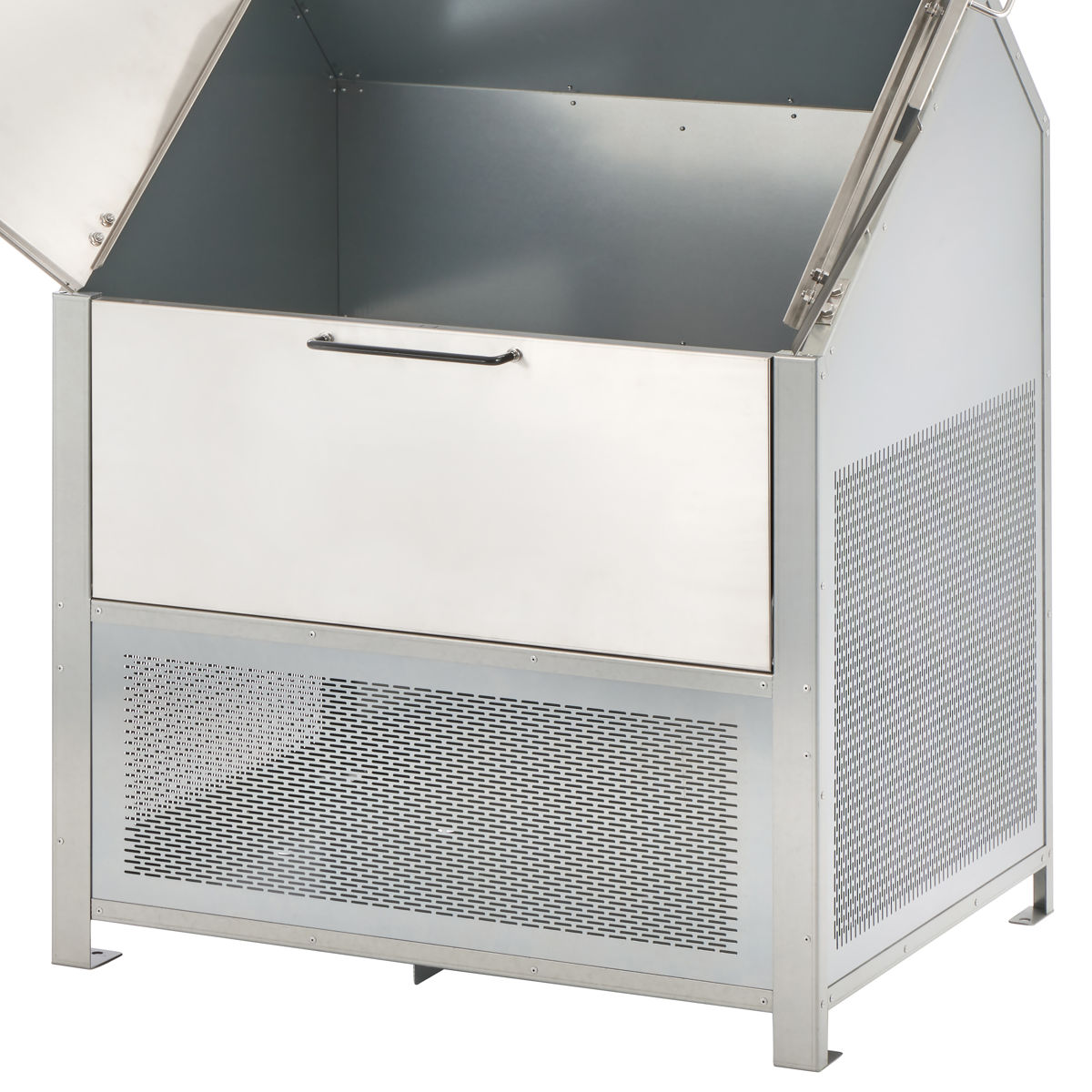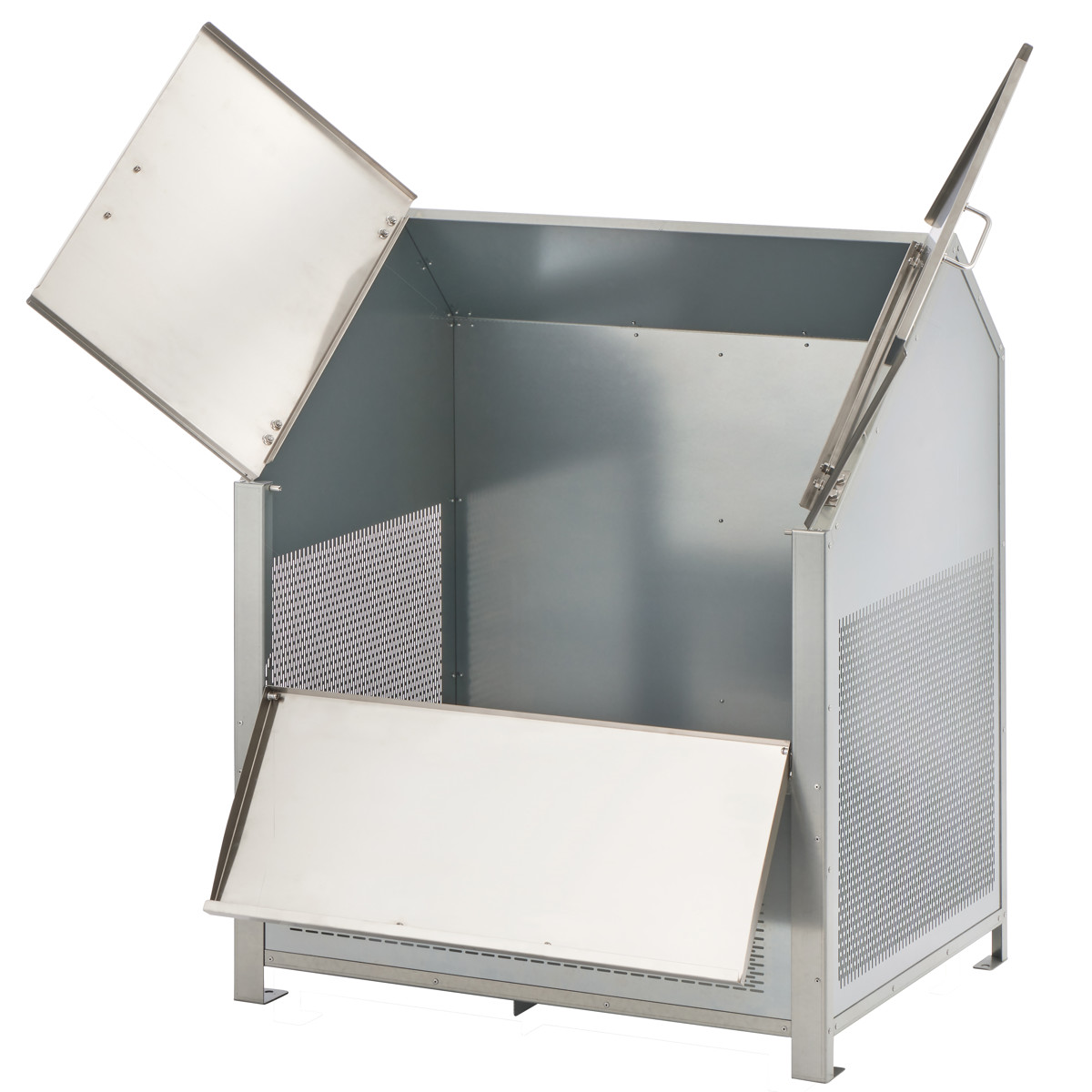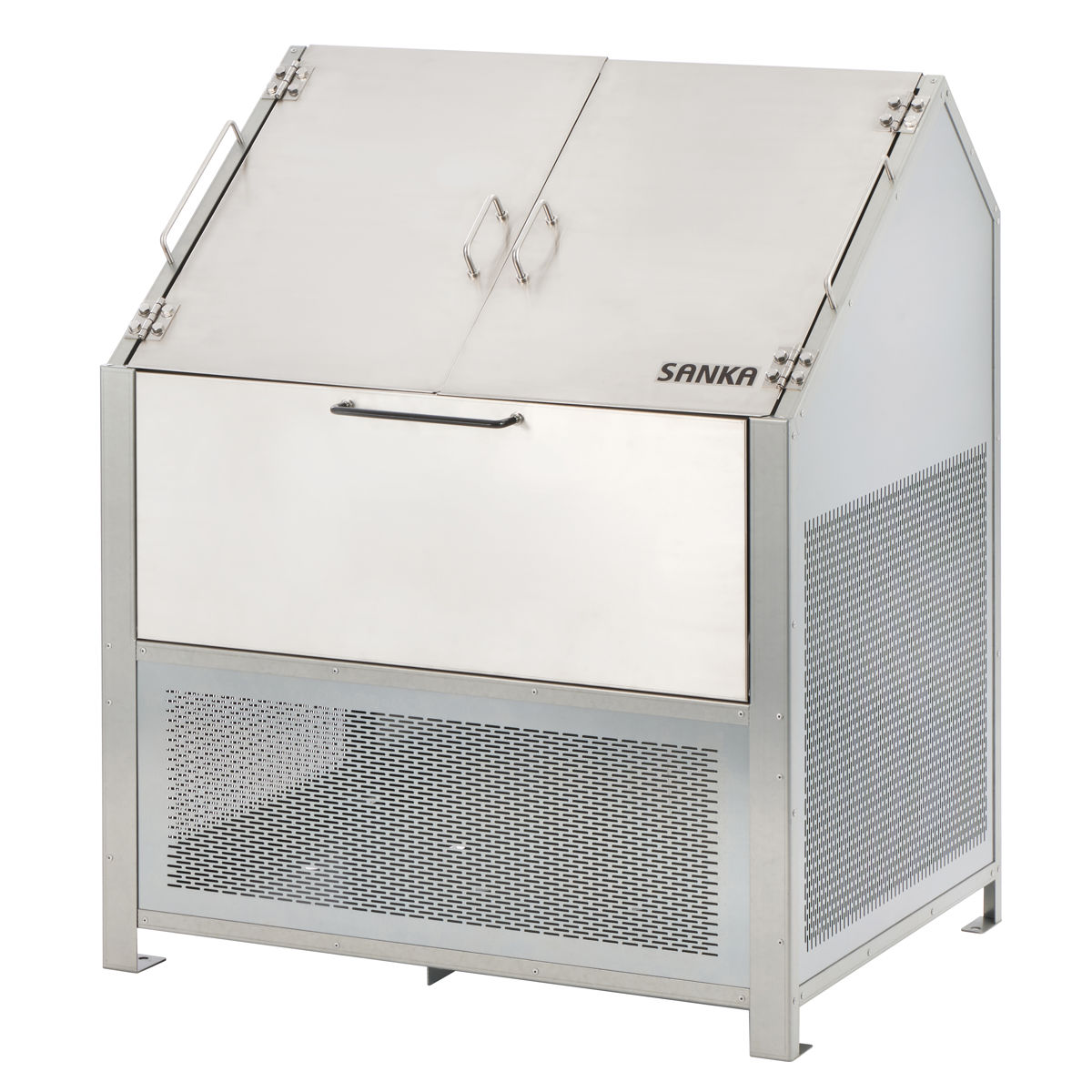 かさばりがちな可燃ごみや資源ごみをまとめて収納でき、ゴミ出しまでの一時保管に便利なゴミ収納庫です。扉はサビに強いステンレス製でお手入れが簡単。シンプルでスタイリッシュなデザインは、建物まわりや敷地内に設置しても景観を損ねにくいです。