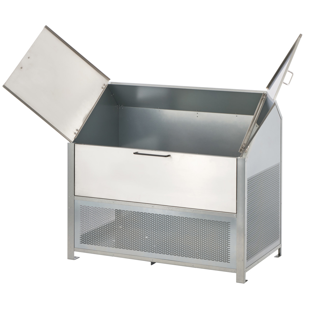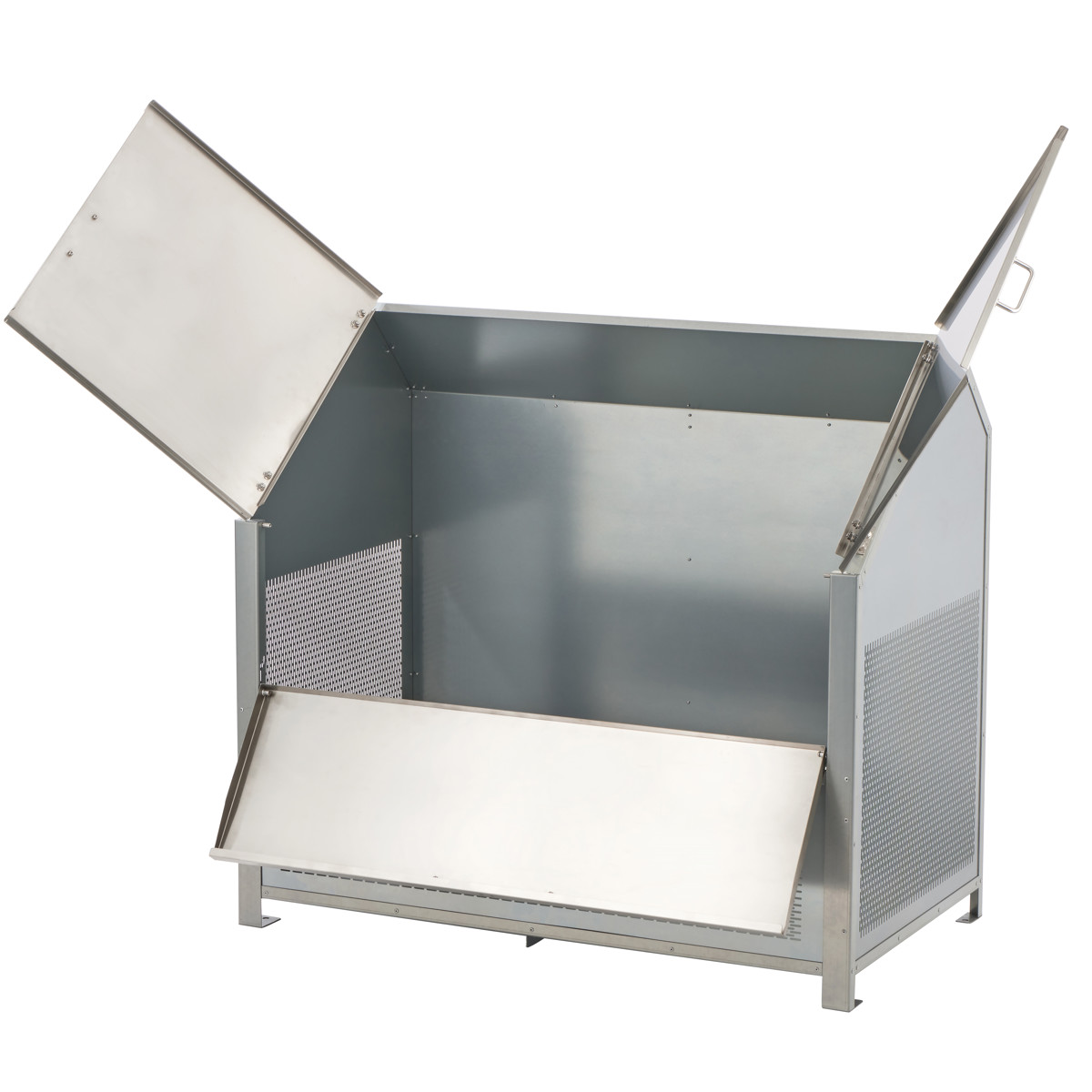 | 材質 | 本体:高耐食溶融めっき鋼板 金具・ネジ:ステンレス、アルミ 扉・ハンドル:ステンレス(SUS304) ハンドルゴム:ポリ塩化ビニル |