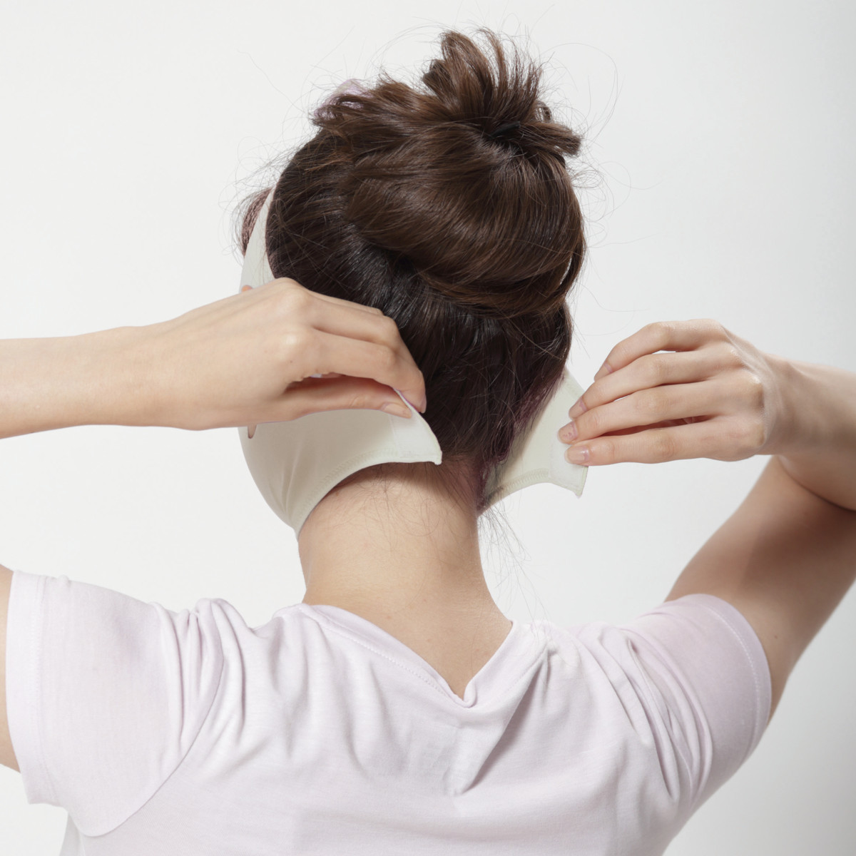 STEP2:Bの面テープを耳の後ろで閉じ、耳は耳穴から出してください。
