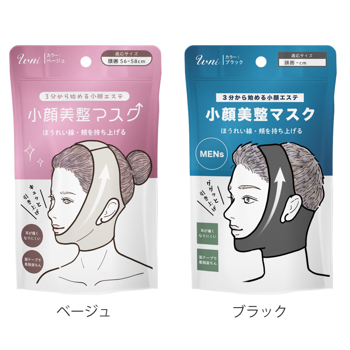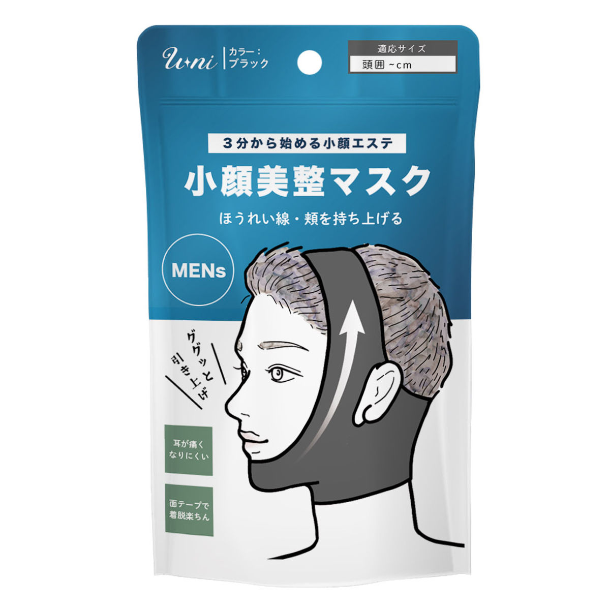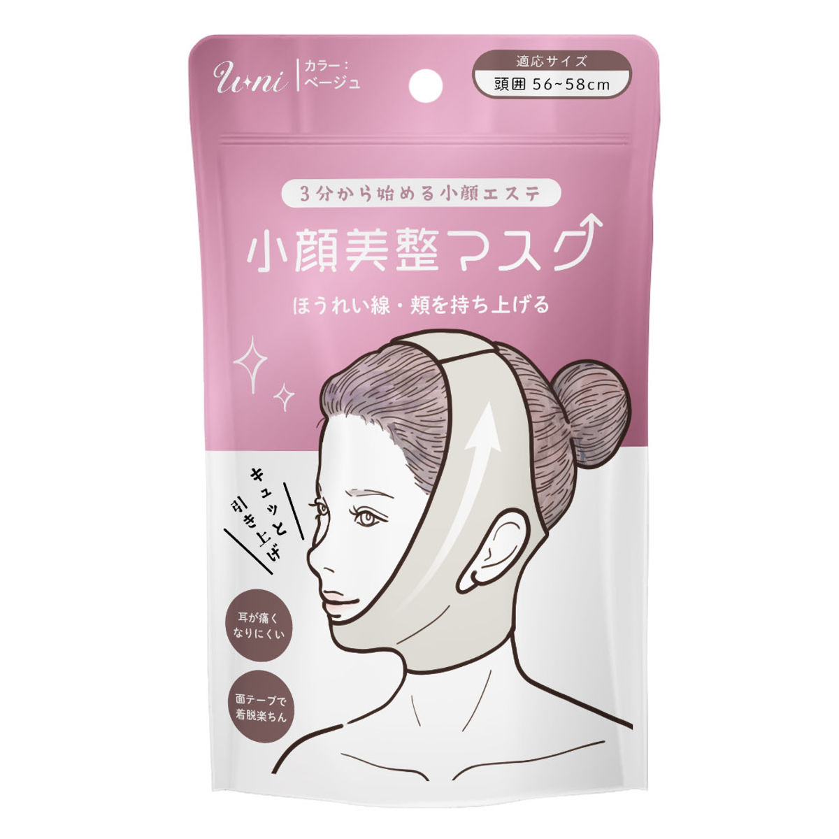 頬からフェイスラインにかけてキュッと引き上げる小顔美整マスクです。たるみが気になる口元・頬・ほうれい線まわりをやさしく持ち上げ、すっきりと整えます。自宅で手軽に、3分からフェイスケアを始められます。