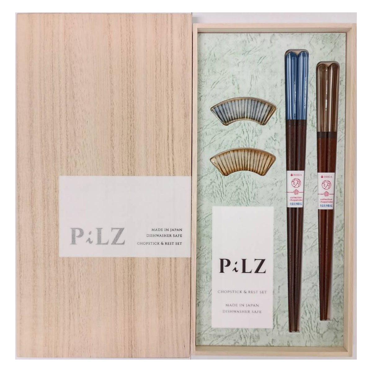 - 箸:天然木・アクリルウレタン塗装 箸置:磁器