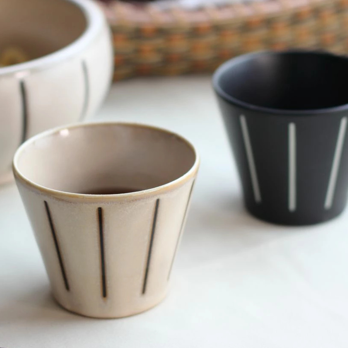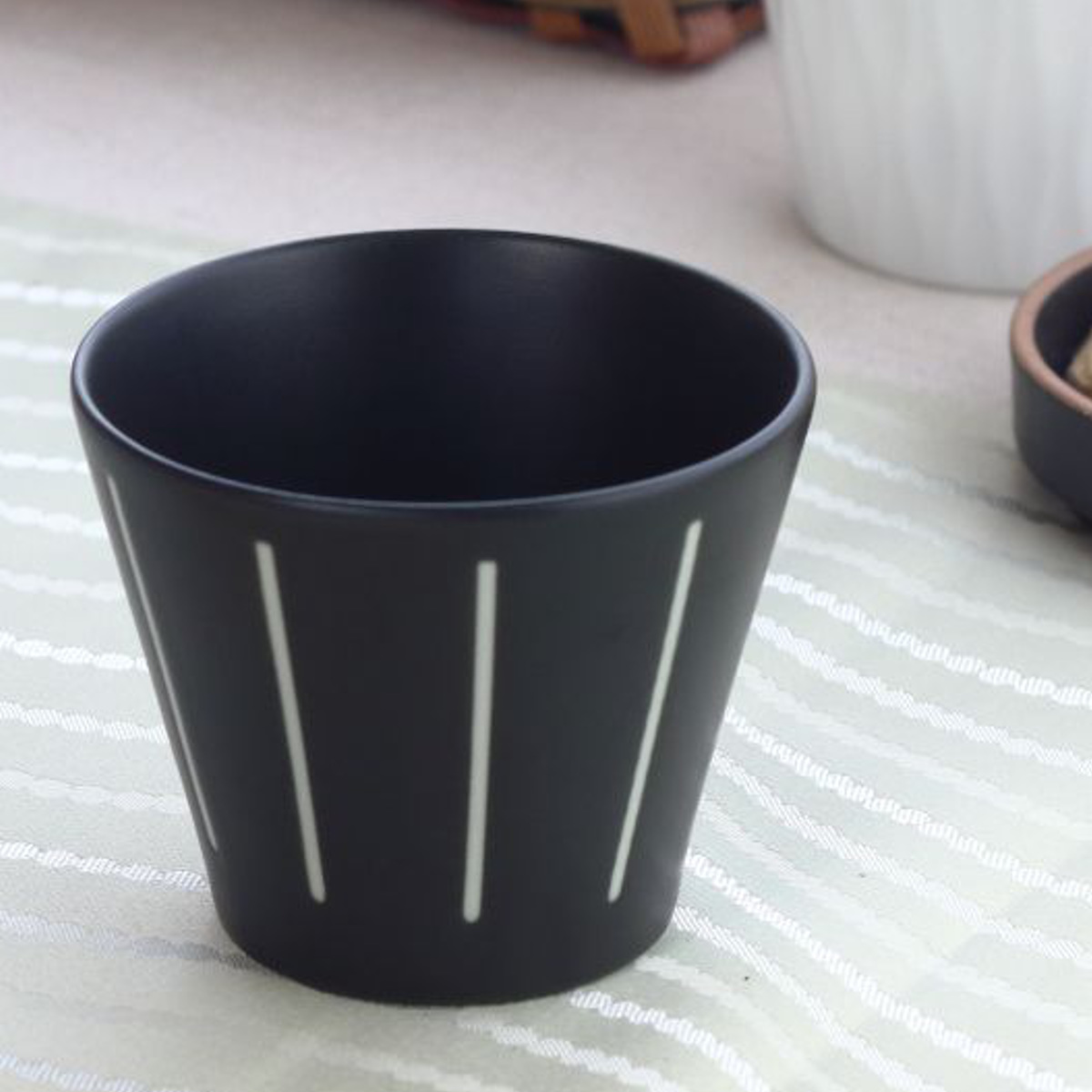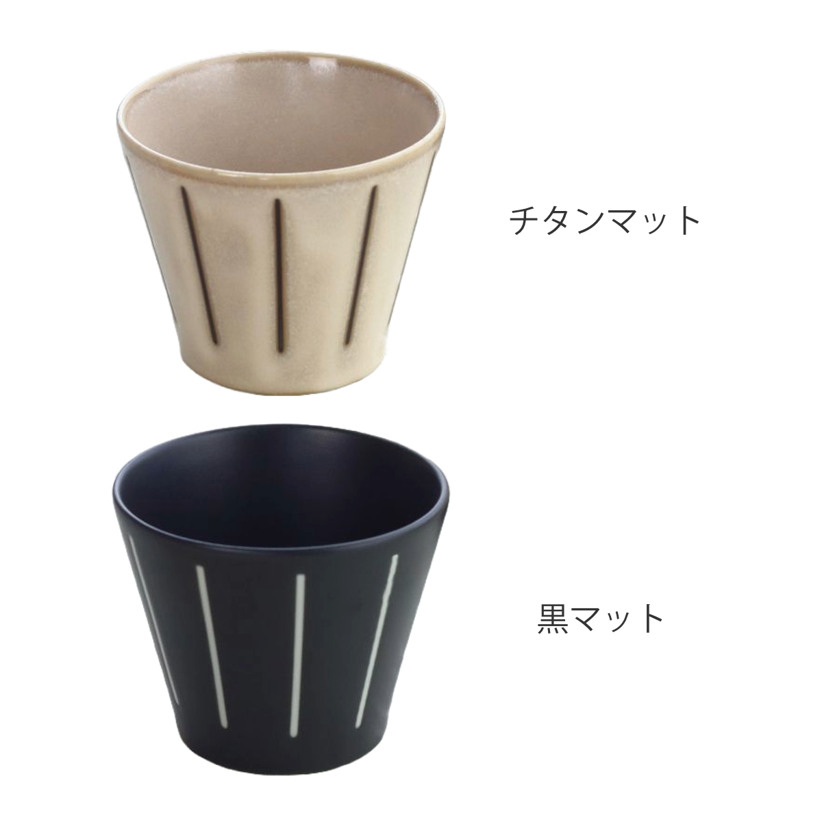 ざるそば・そうめんに欠かせないマルチカップです。ボーダー柄のシンプルでレトロ可愛いモノクロストライプシリーズです。和食に馴染むチタンマットと和洋食にそつなく使える黒マットなカラーです。