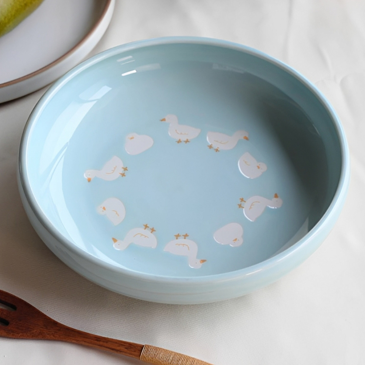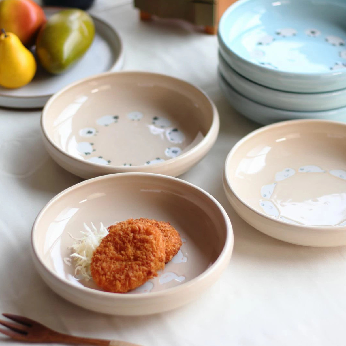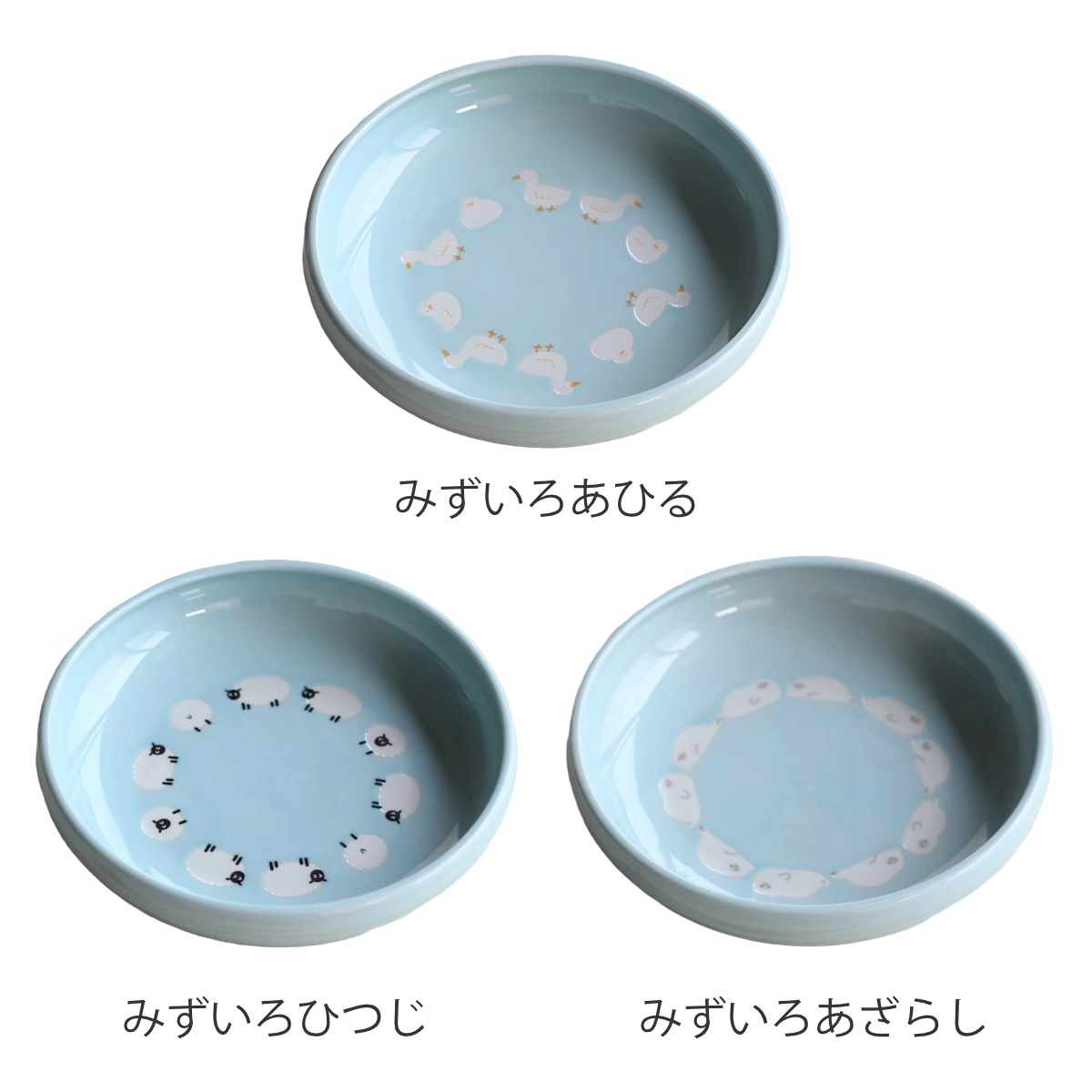 あひる、ひつじ、あざらしの深皿プレートです。ふんわり愛らしいアニマル柄が食卓をやさしく癒します。ベージュとブルーから選べるキュートなデザインが魅力です。美濃焼の日本製で、普段使いからおもてなしまで幅広くお使いいただけます。