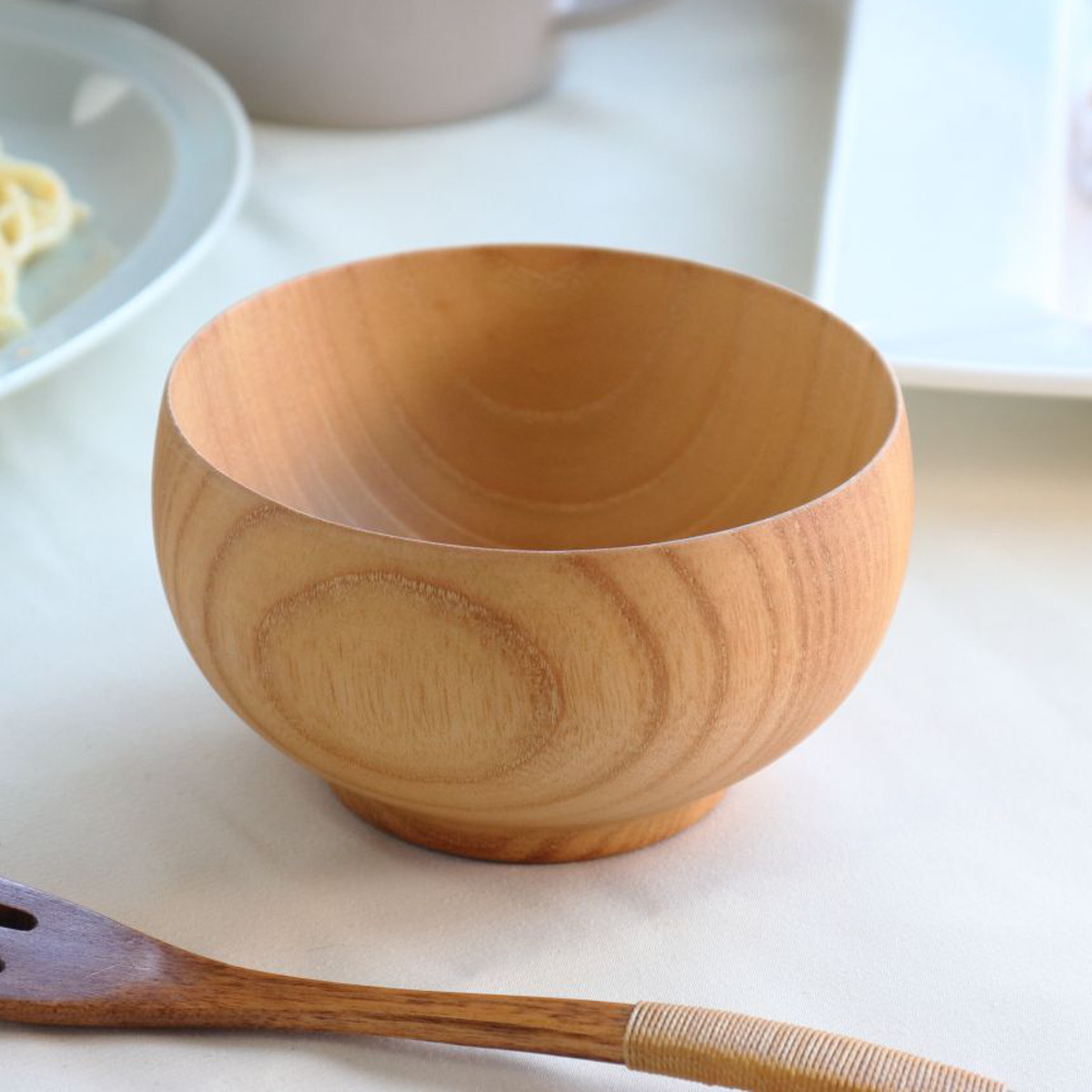 木のぬくもりを感じられる、毎日使いにぴったりのウッドボウルです。あたたかいスープやお味噌汁はもちろん、朝食のシリアルやサラダボウルとしても活躍します。小さめサイズなので、お子さま用としてもおすすめです。