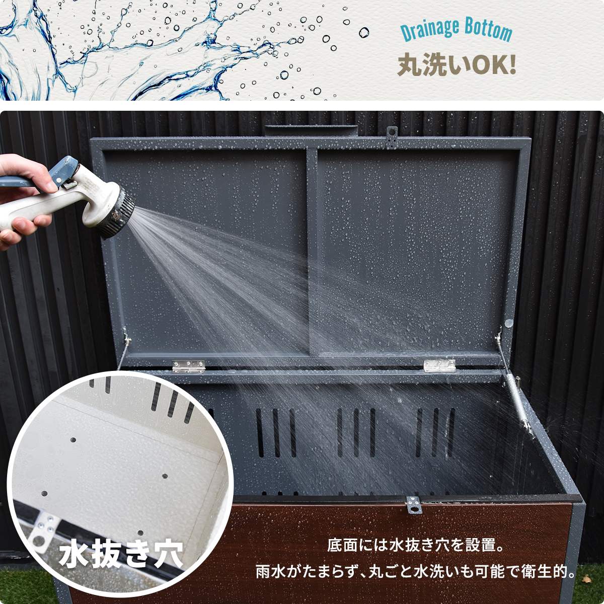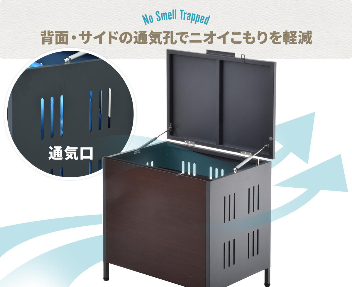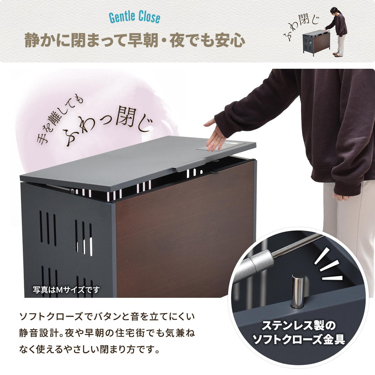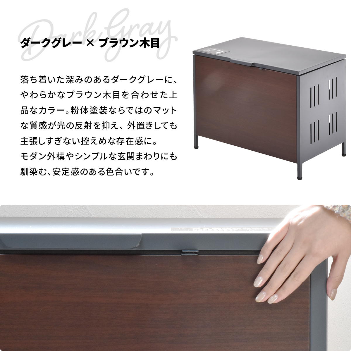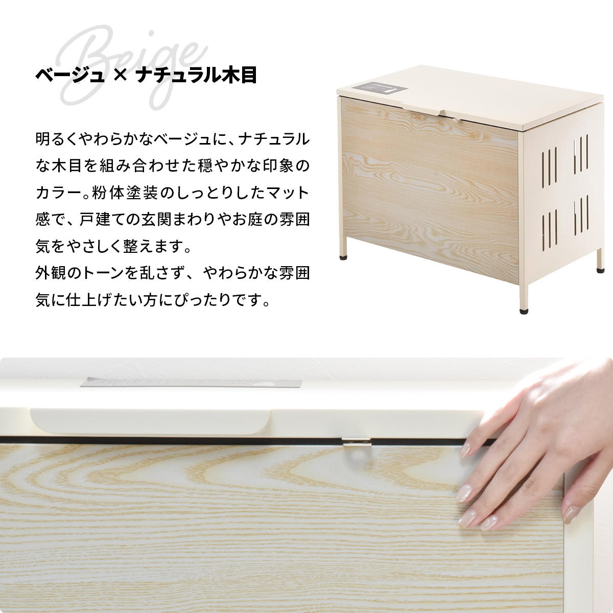 野良猫やカラス対策にも配慮した設計。しっかり閉まるフタで中身を守ります。表面は粉体塗装仕上げでサビやキズに強く、長く安心してお使いいただけます。