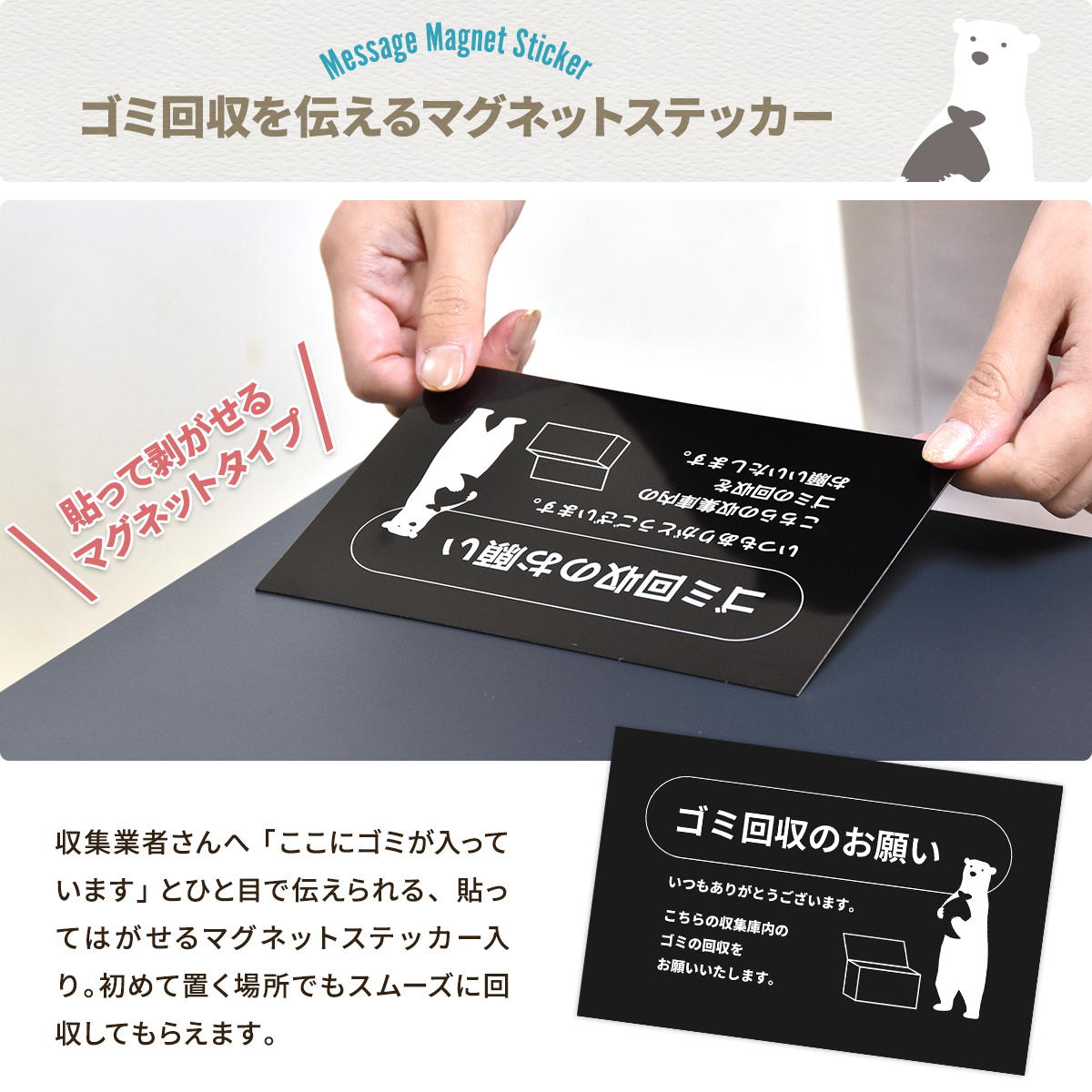 回収業者さんへ、ゴミ回収を伝えられるマグネットステッカーがついています。