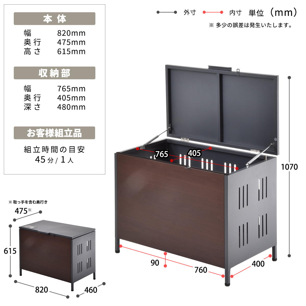 | 耐荷重 | 上蓋:約15kg 収納部:約90kg 全体約100kg |