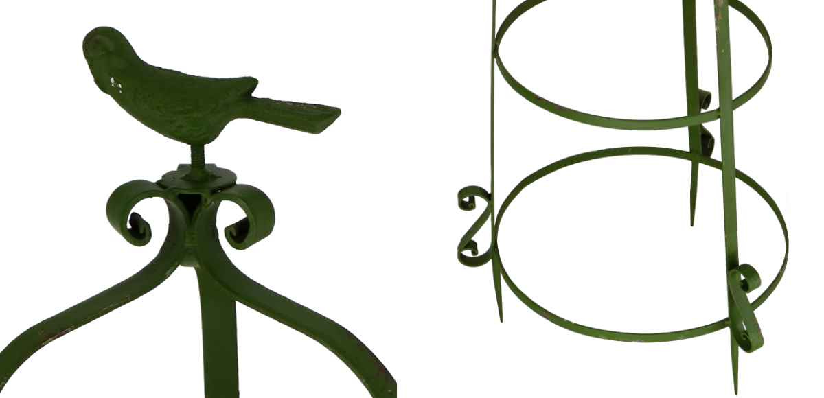 優雅なデザインが美しいオベリスクです。バラやクレマチス、アイビーなどのツル性植物を誘引するのに最適で、お庭に上品で華やかな雰囲気を添えます。